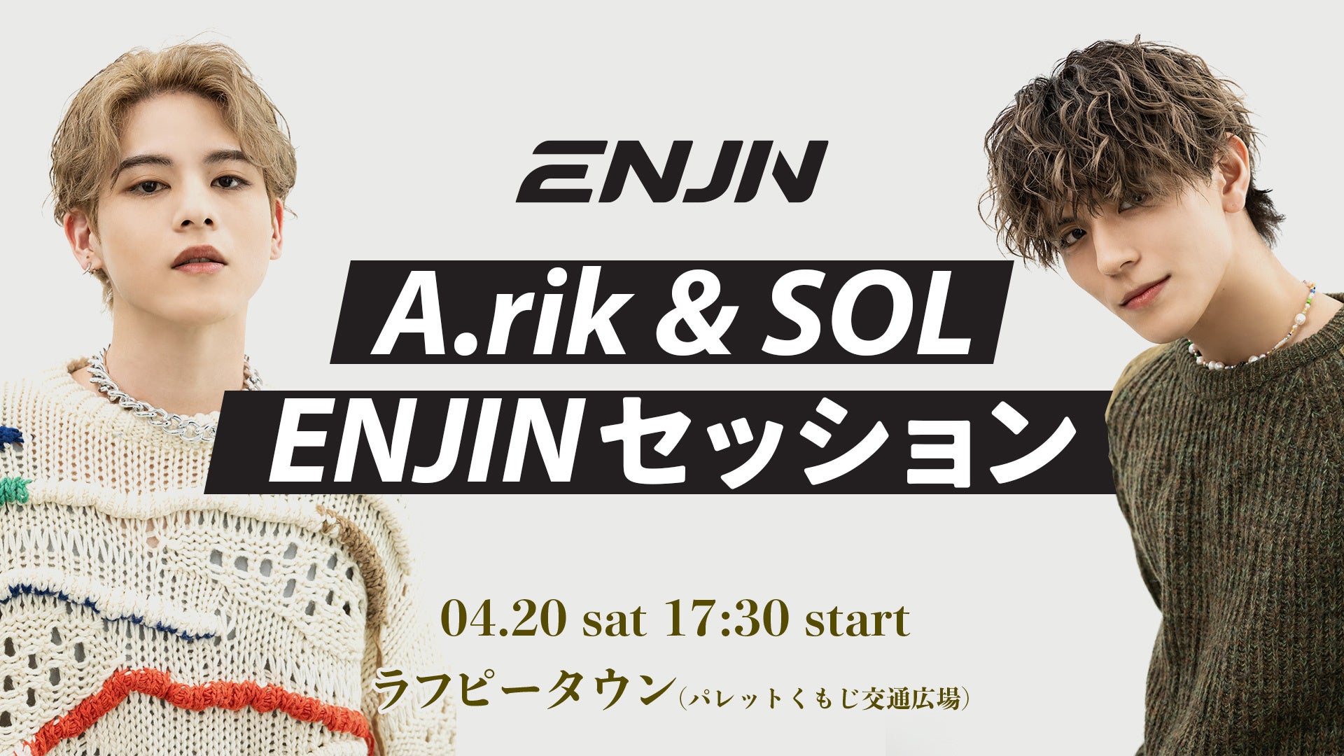 映画祭を盛り上げるイベントが続々と決定しました。パレットくもじ前 交通広場の特設ステージでは4月20日(土)・21日(日)の2日間にわたり、お客さま参加型の飛び入りカラオケステージや芸人・アイドルステージ、ダンス&ボーカルグループ“円神“から沖縄出身のA.rikとSOLが登場し、一日限りの特別な『A.rik&SOL ENJINセッション』ステージを披露。