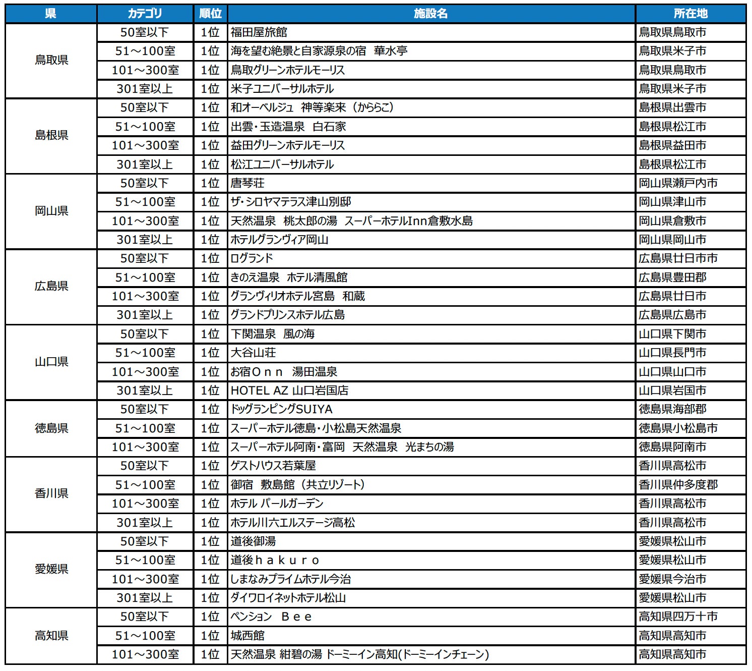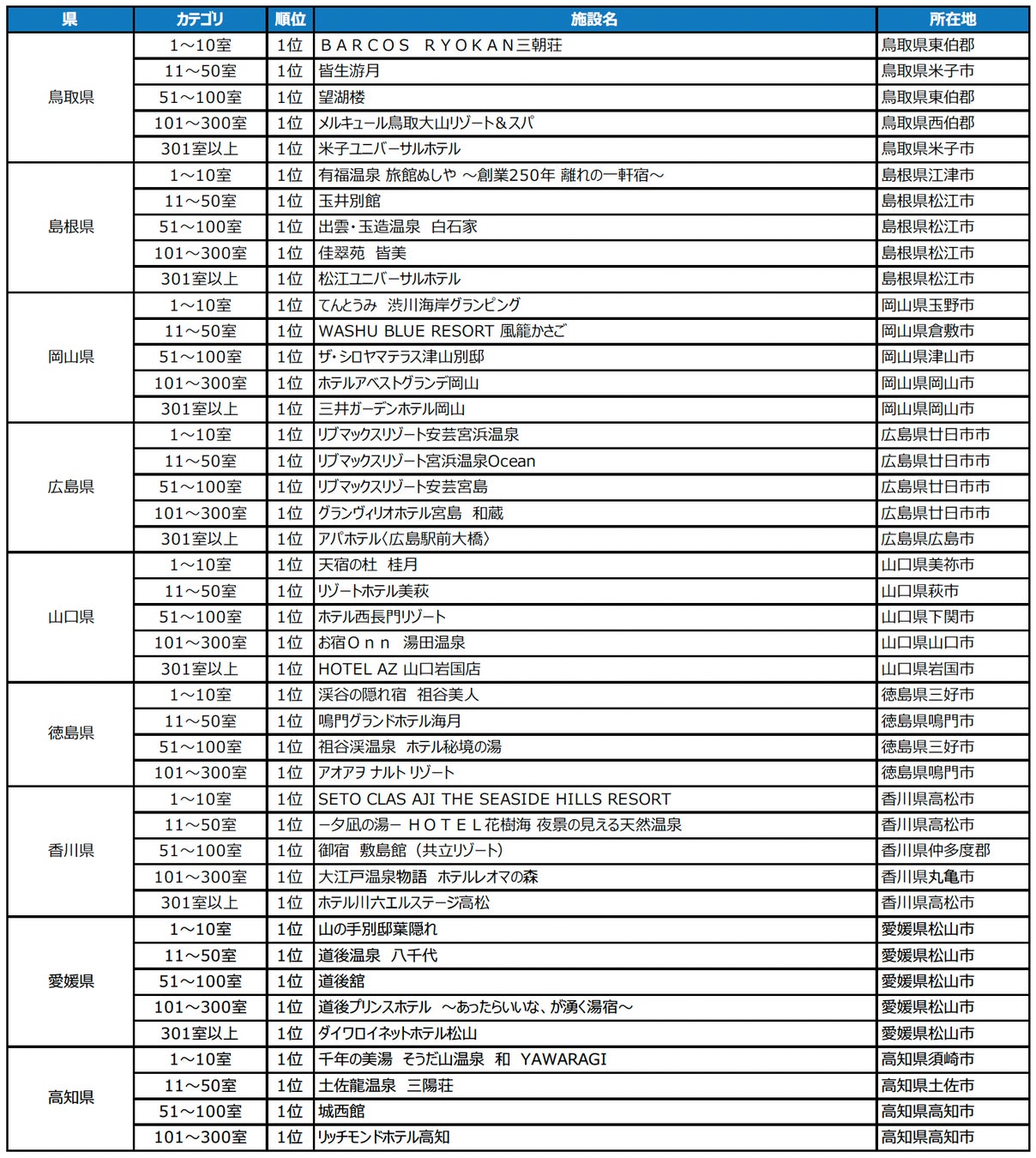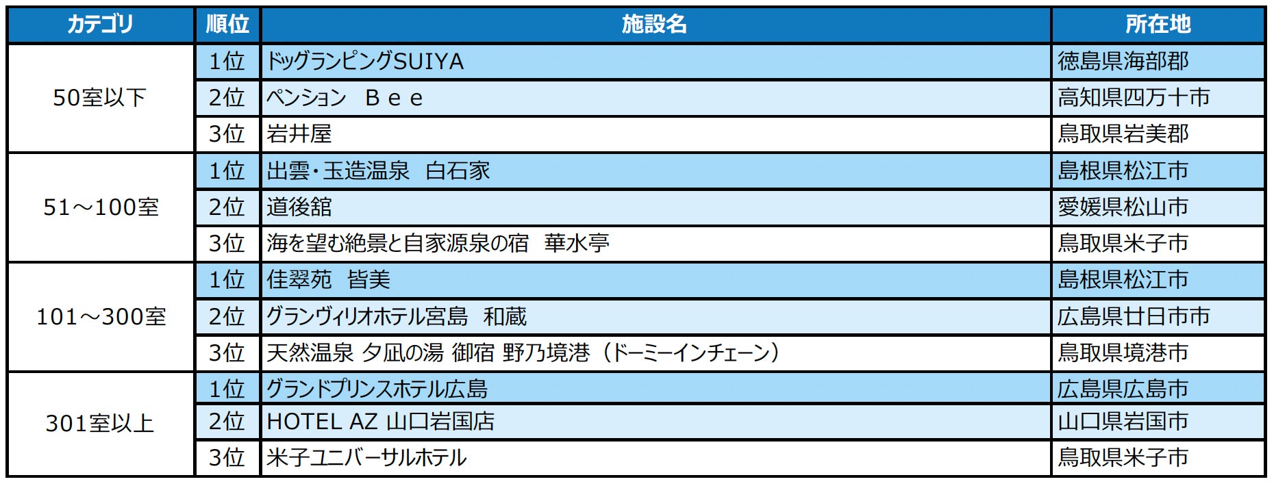 2024年度の1年間に顕著な実績を収めた宿泊施設を表彰「じゃらんアワード2024」中国・四国ブロック発表