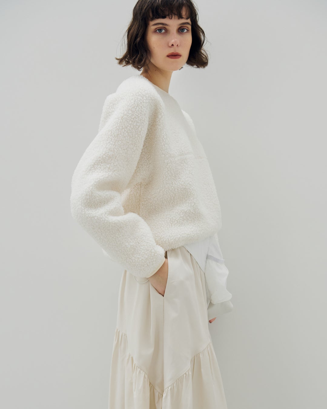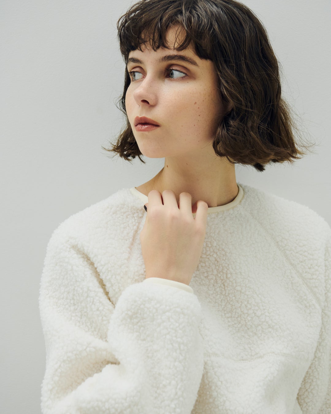 カラーによってトップスの素材を変えており、OWHTのボアで防寒に優れ、OLVとNVYはカット素材 でより気軽に使いやすいアイテムに。