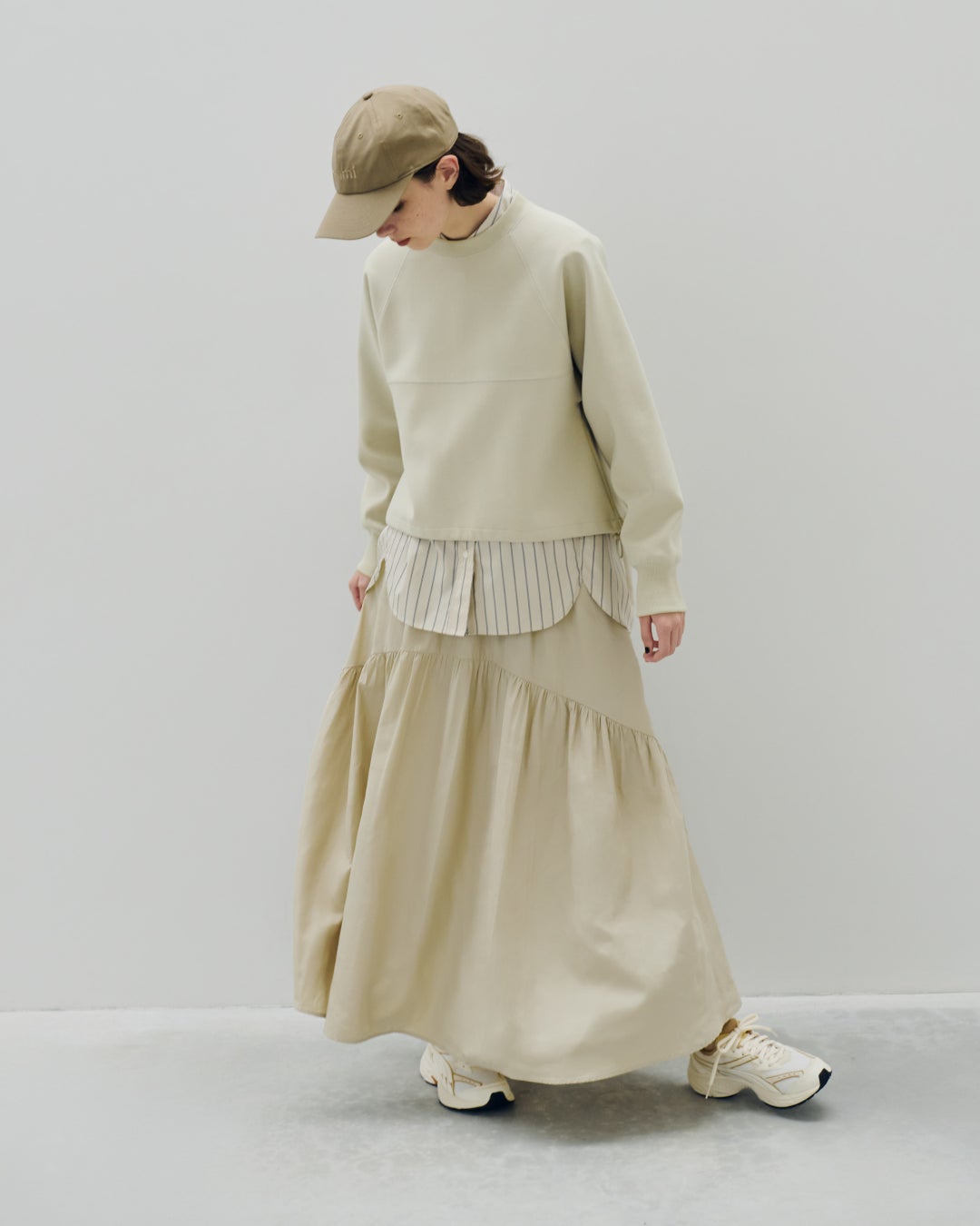 セットでも、単品使いもできるプルオーバーとスカートのセットアイテム。別々に着用可能のため、スタイリングの幅を広げてくれます。