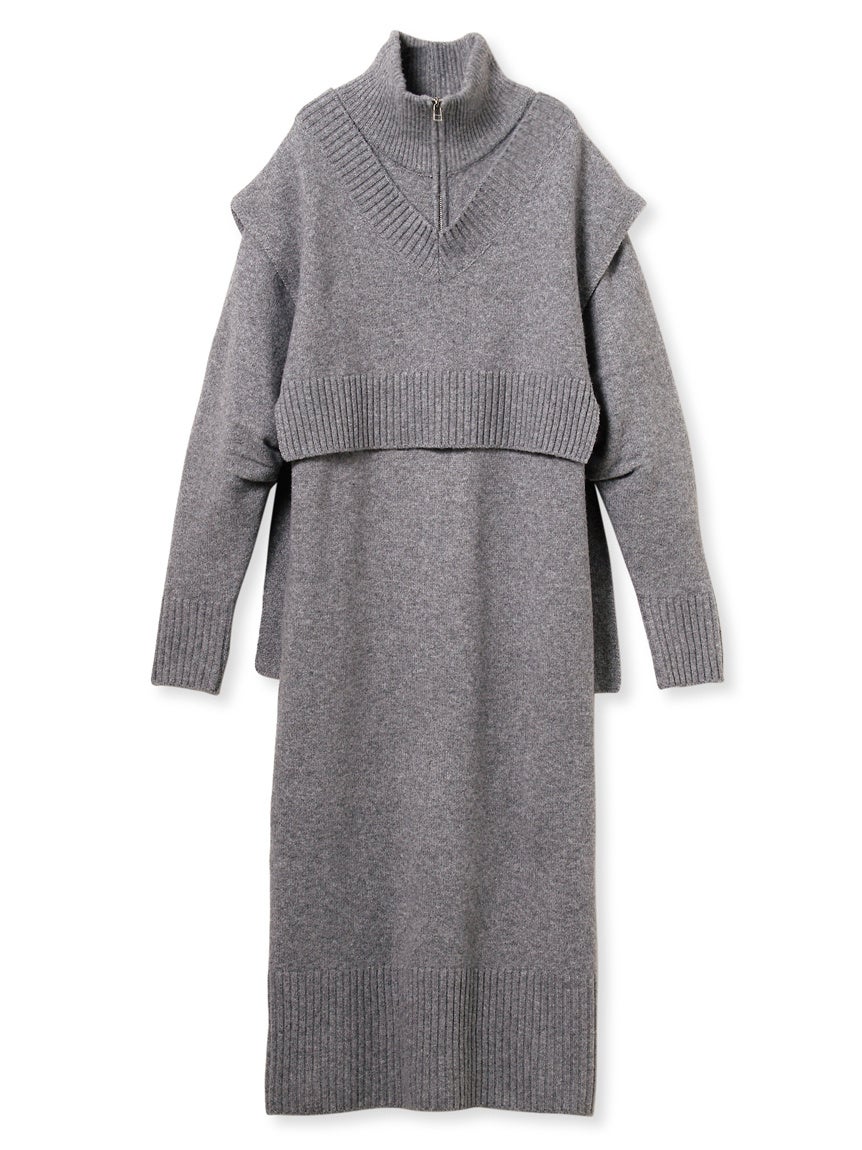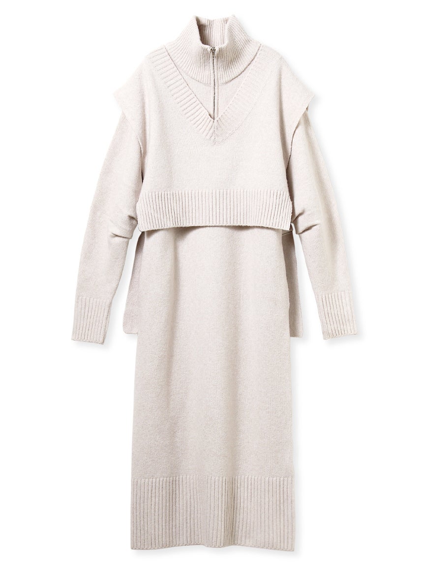 【NEW YEAR'S SPECIAL ITEM】ベスト×ハーフジップニットワンピース
