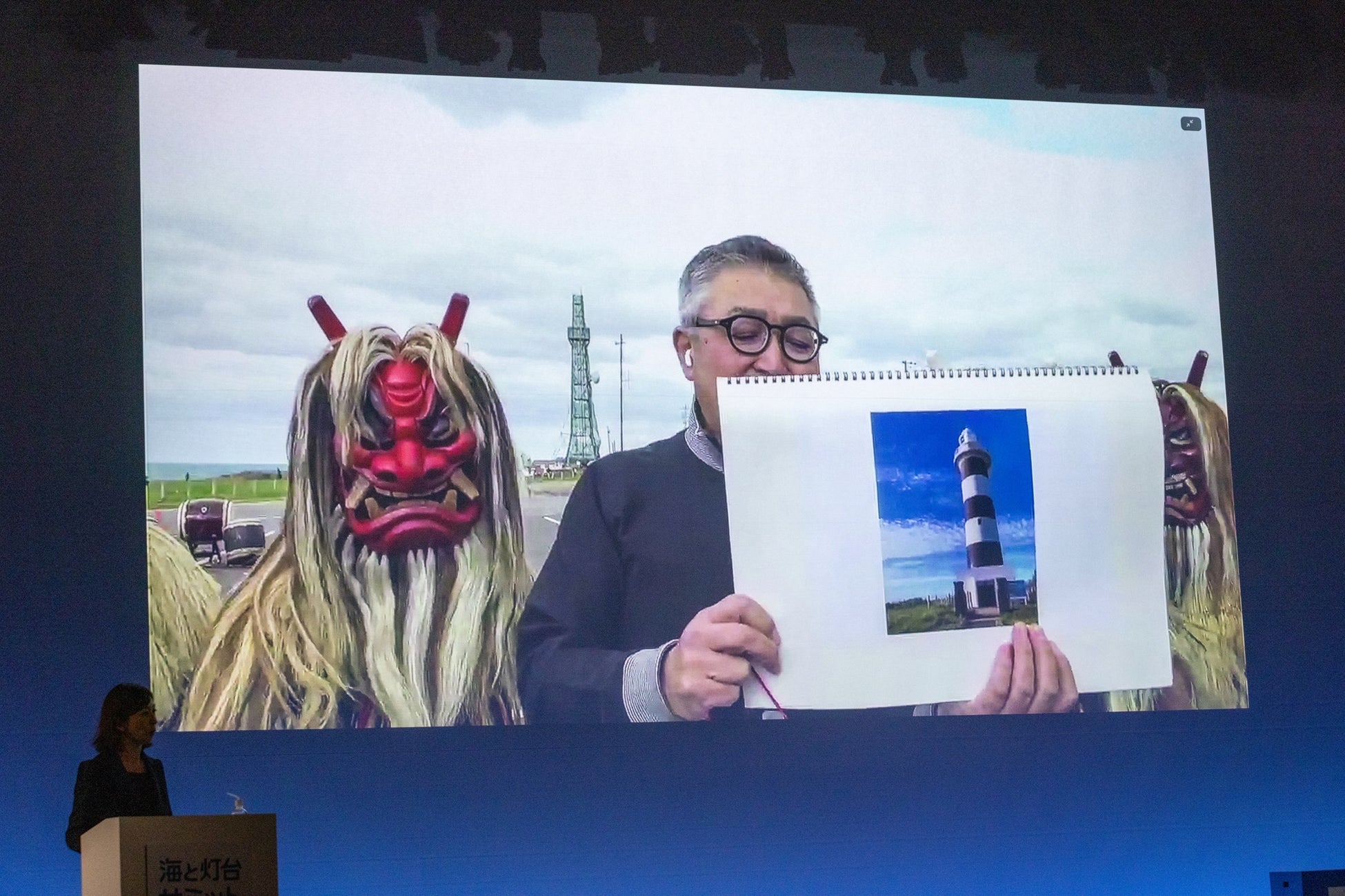 秋田県男鹿市でこの日開催されていたイベント「石焼フェス」から「なまはげ」と共に中継で参加した入道埼灯台利活用事業委員会(秋田県)の田中勝さんは、秋田県男鹿市の郷土料理「石焼料理」で使われる石は、灯台の地盤である7000万年前の岩石だったという興味深い話題を提供。灯台と食をかけ合わせて地域の地質的な成り立ちを伝えることで、「灯台」と「食」双方に新たな価値を生み出せる可能性を示唆しました。