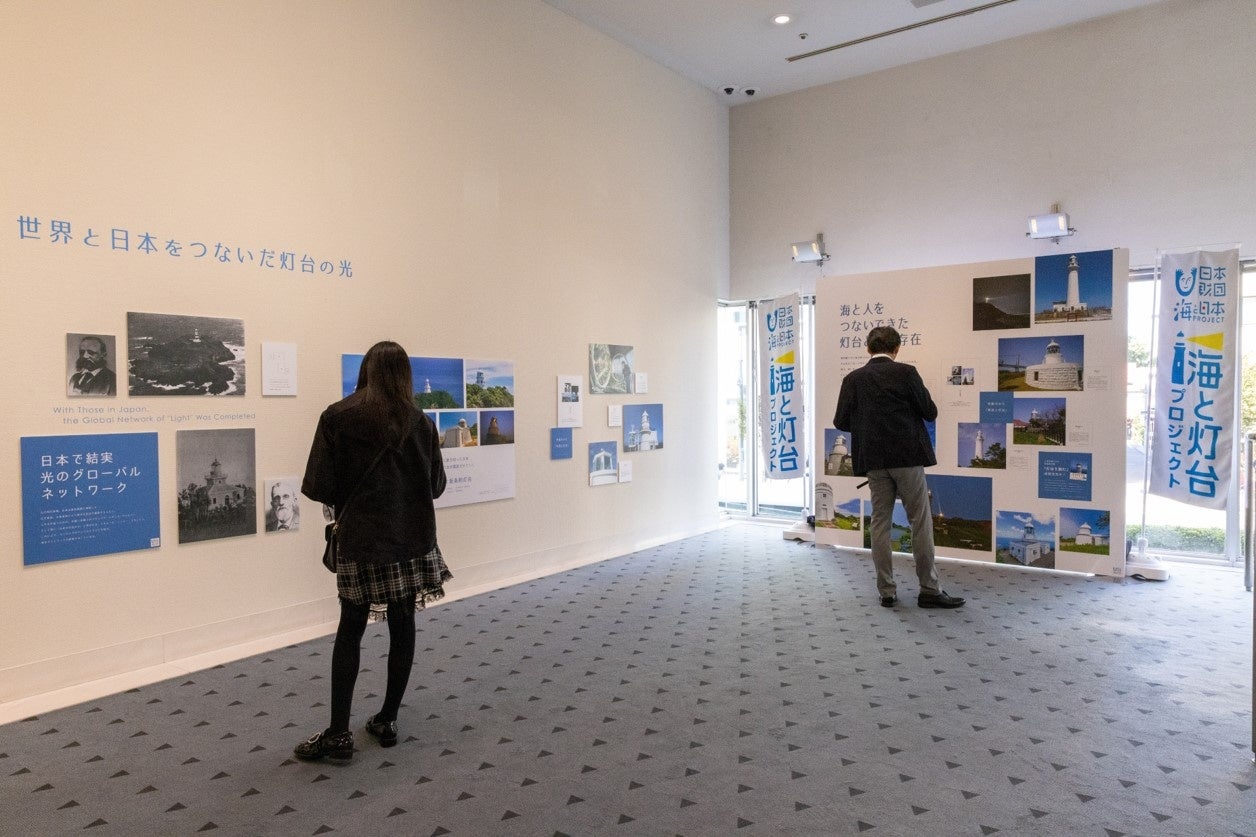 シンポジウム会場へ続く階段と通路を活用したギャラリー部分では、灯台の魅力を歴史的価値からエンターテインメントまでさまざまな視点で紹介する企画展「海と灯台展」を開催。太古から大航海時代、そして現代までの人と海と灯台の関わりを紐解くパネル展示や、人気作家の紀行集「灯台を読む」と連動した写真展示などを通して、灯台の奥深い魅力を発信しました。来場者からは「大きさに魅せられて灯台を好きになった。展示を見て、全国を回ったような気分になれました」との感想をいただきました。