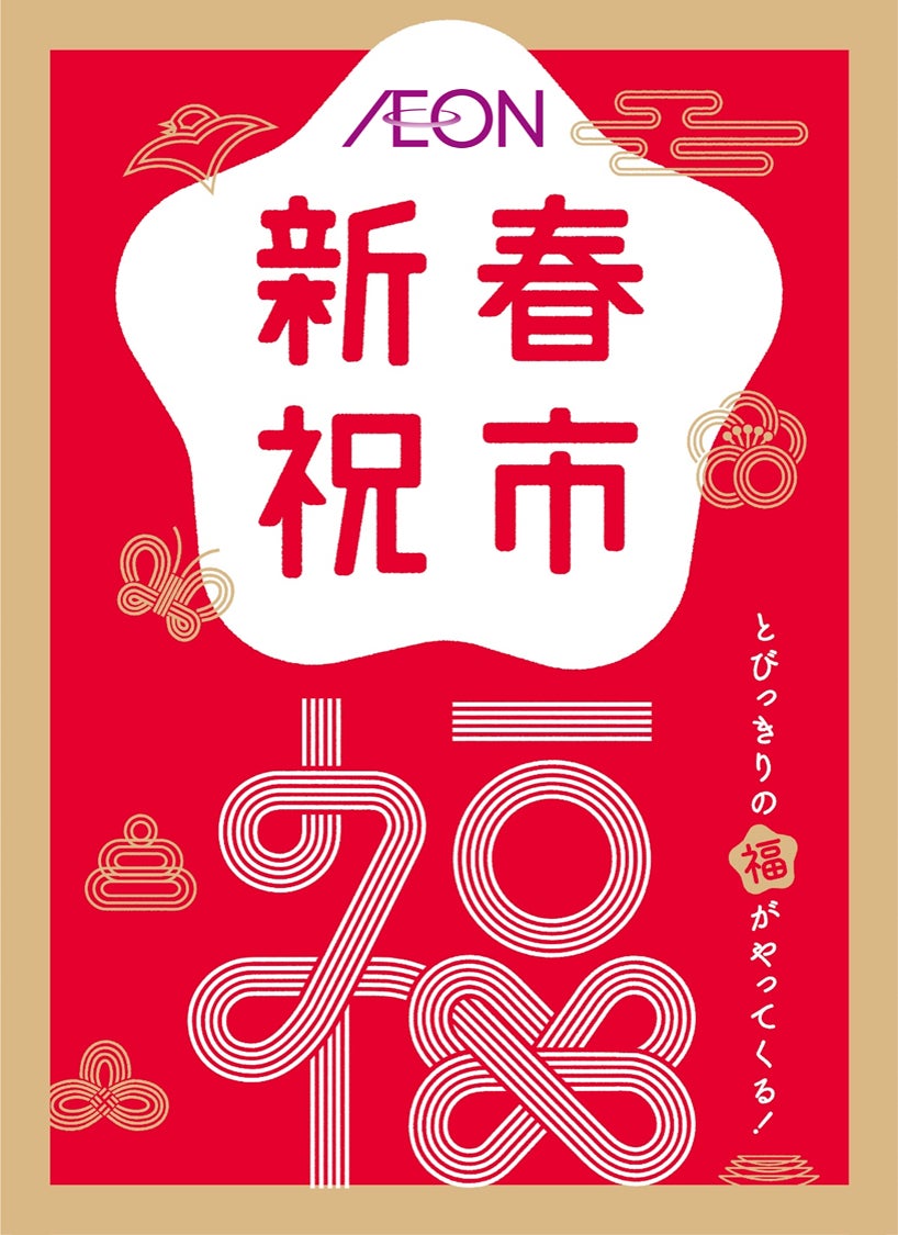 イオンリテールは「イオン」「イオンスタイル」等約360店舗※1にて「福袋」や「福企画」を順次販売※2します。福袋は前年比1.2倍の数をご用意し、年内から販売を開始するほか、消費マインドを刺激するお得な均一企画、帰省先やおうちで楽しめる商品を取り揃えます。また、オンラインや地域限定の特別企画もご用意し、店舗とネットで新年の福を呼び込む「新春祝市」を開催します。