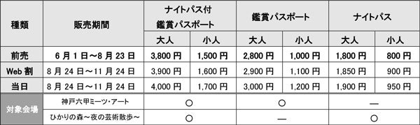 ナイトパス付鑑賞パスポート 大人4,000円、小人1,700円