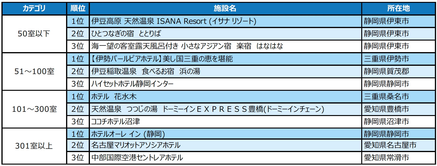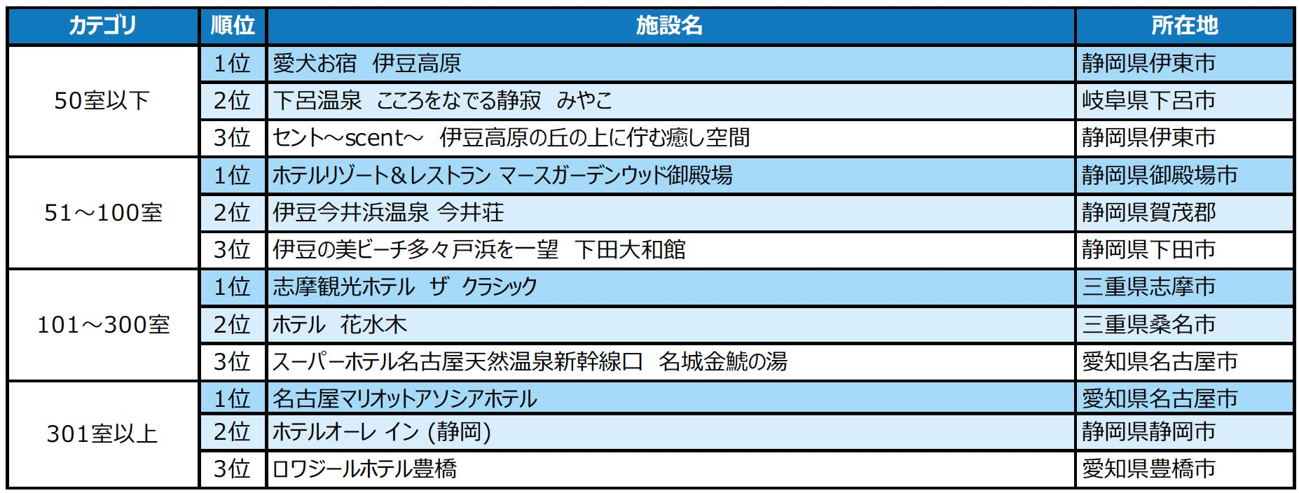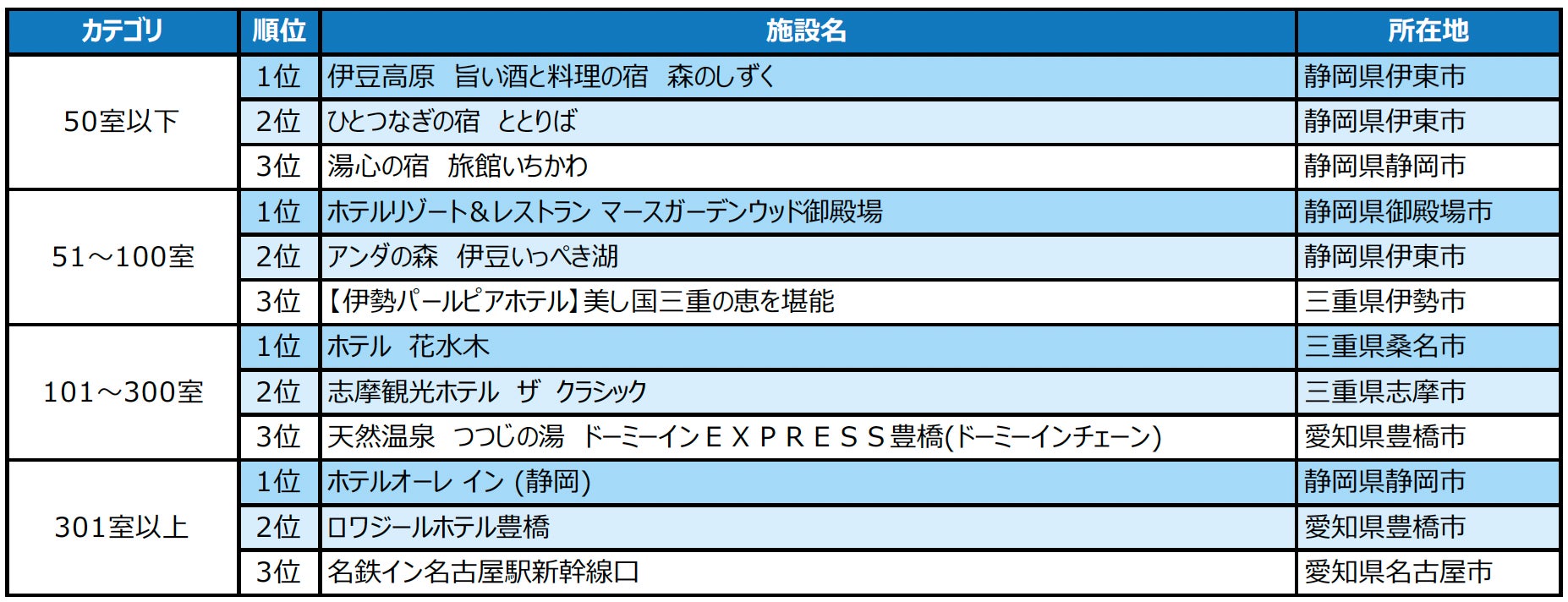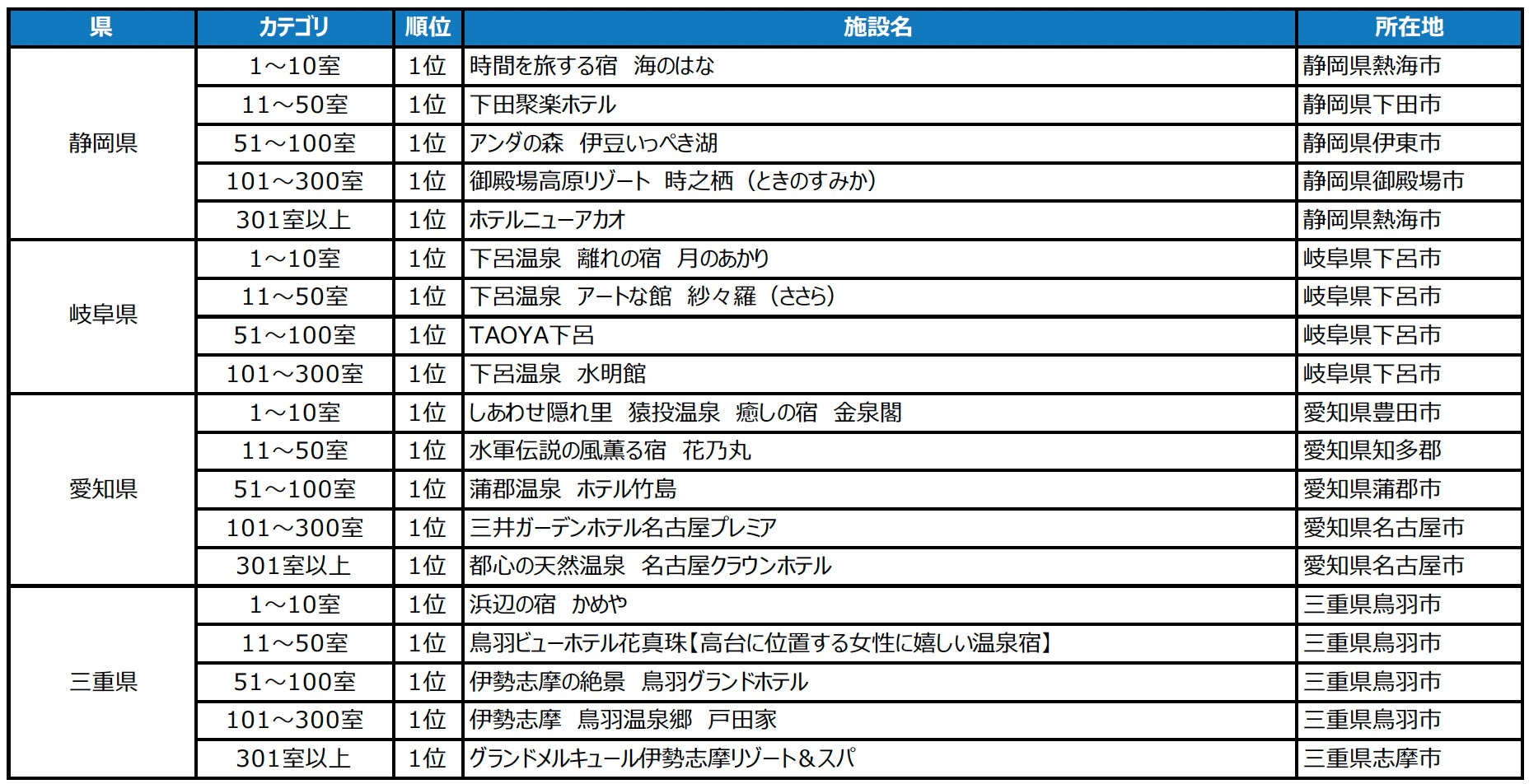 2024年度の1年間に顕著な実績を収めた宿泊施設を表彰「じゃらんアワード2024」東海ブロック発表