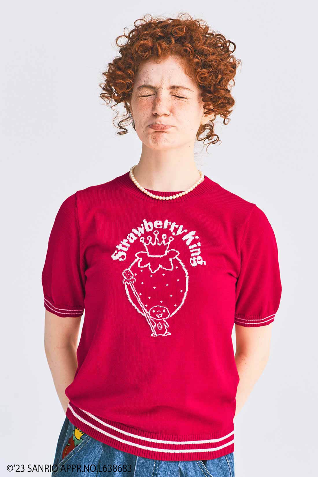 【NEW】サンリオキャラクターコラボ ちょっぴりレトロな涼やかニットトップス〈いちごの王さま〉