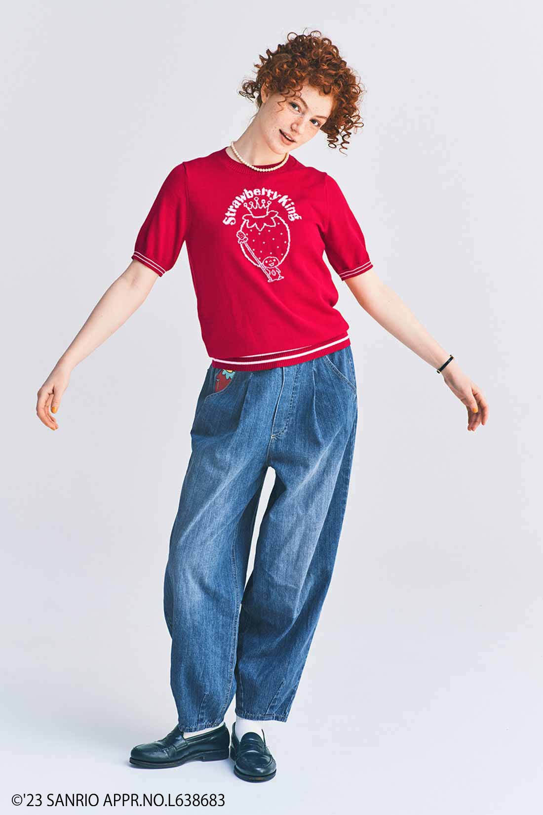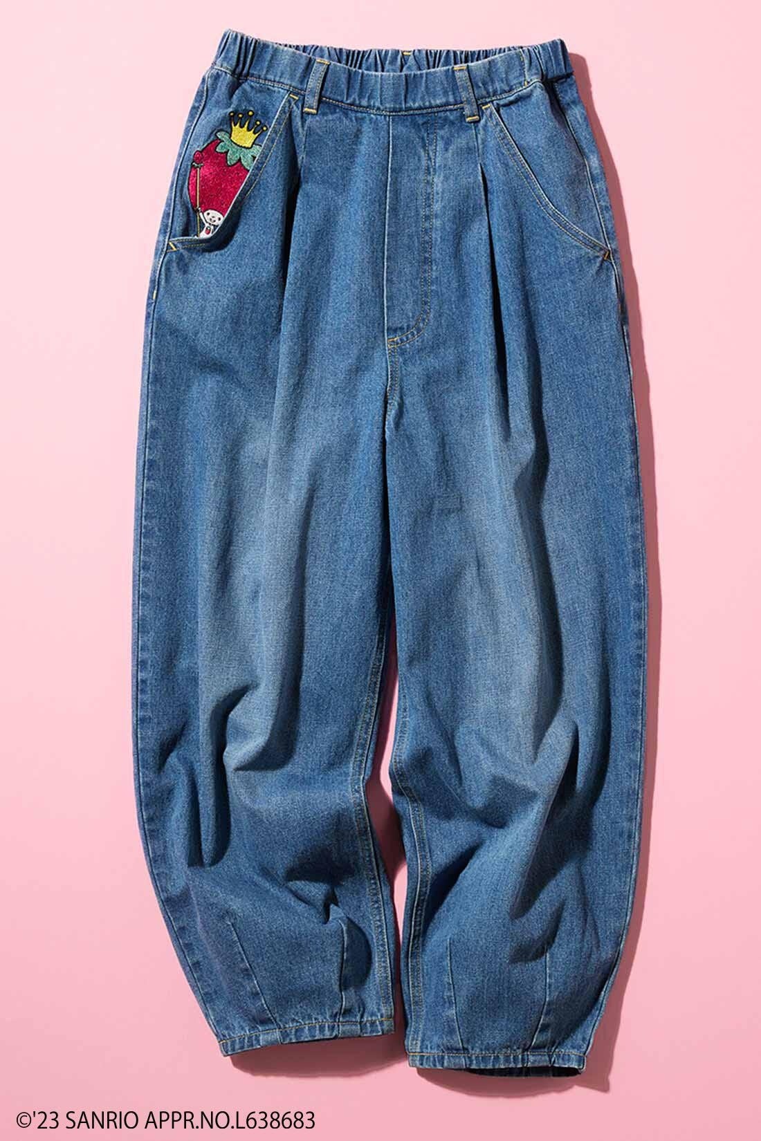 【NEW】サンリオキャラクターコラボ かくれんぼが楽しい ぷっかりシルエットのデニムパンツ〈いちごの王さま〉