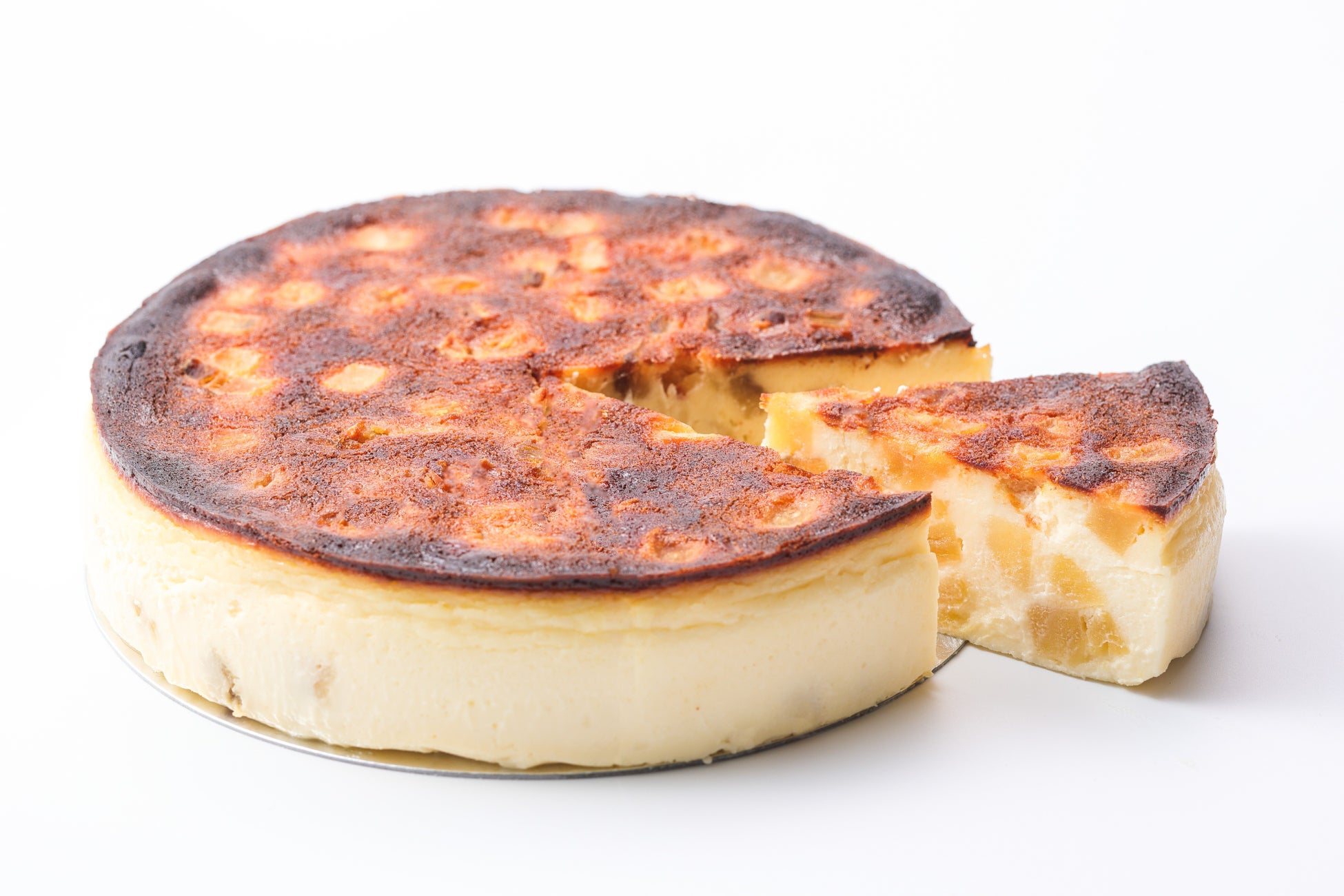 チーズケーキのベースは、まろやかなクリームチーズとクリーミーな白カビチーズのブリア・サヴァランを独自の配合でブレンド。 さらに、軽やかでコクのある九州大牟田産の生クリームをふんだんに使用し、濃厚ながらも上品な味わいに仕上げました。ダイスカットした金蜜芋を生地に混ぜて焼き上げ、仕上げに千葉県産の芋焼酎をひと吹き。ほんのりとした風味が大人の味わいを引き立てる一品です。ホテル最上階のラウンジで夜景とともに、贅沢な〆デザートの時間をお愉しみください。