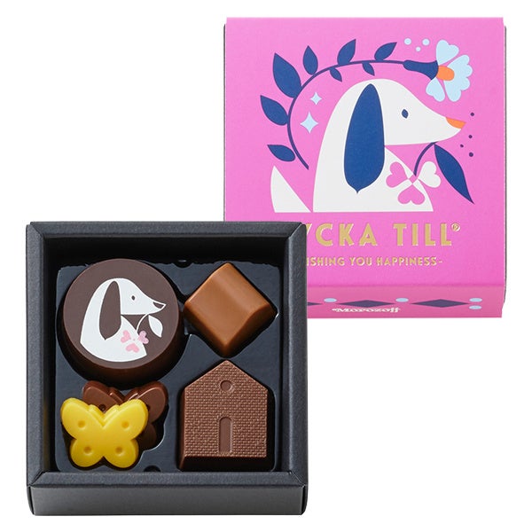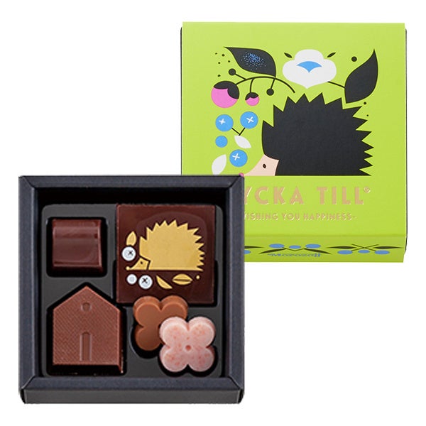 北欧テイストのデザインが可愛らしい魅力いっぱいのシリーズです。ハリネズミやイヌなど動物や植物のイラストにかわいい動物型のチョコレートをアソートしました。洋酒不使用のチョコレートなので、お酒の苦手な方やお子さまでも安心してお召し上がりいただけます。