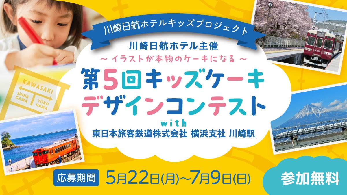 「キッズケーキデザインコンテスト」は毎年開催している「キッズプロジェクト」の人気企画です。地域の皆様との交流を目的にご家族の楽しい思い出になるよう、神奈川県、東京都在住の幼稚園児と小学生を対象としております。テーマに沿ったケーキイラストを募集し、入賞者にはホテルパティシエがイラストを本物のケーキに再現してプレゼントします。本年は近隣企業の「東日本旅客鉄道株式会社 横浜支社 川崎駅」と連携し、イラストのテーマを「電車」に設定して募集いたします。また審査員には、川崎市観光協会や地元菓子店、地元企業などに協力をいただき、川崎日航ホテル総支配人、ホテルエグゼクティブシェフパティシエも加わり、厳正な審査により入賞作品を決定いたします。表彰式は8月5日(土)、6日(日)に、ホテル宴会場で開催されるイベント「夏フェス」会場で行います。お子様の未来を応援する夢いっぱいの企画をご家族皆様でお楽しみください。