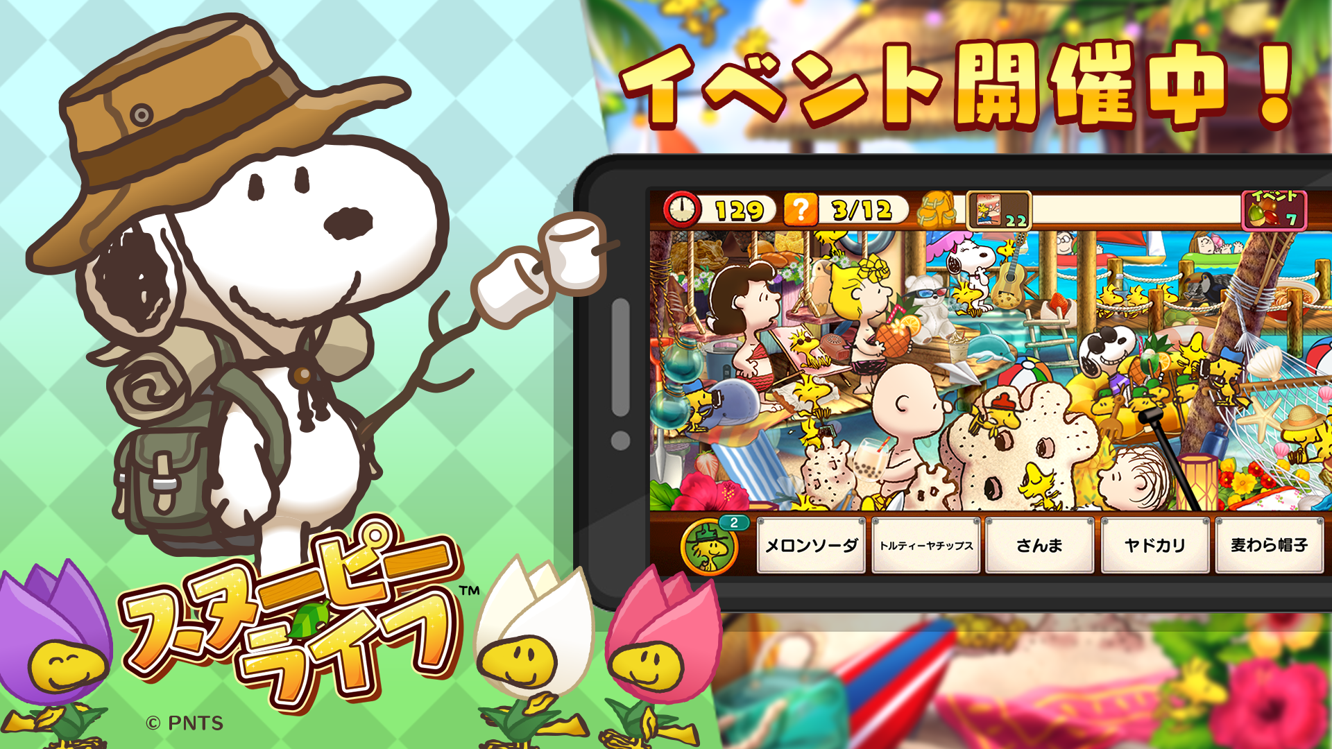 『スヌーピー ライフ』は、誰でも簡単に楽しめるスヌーピーの気持ちいいアイテム探しゲームです。
