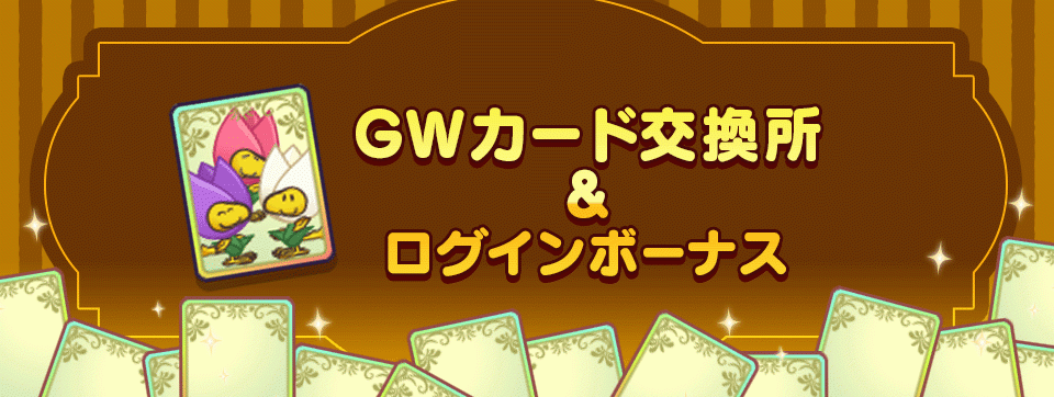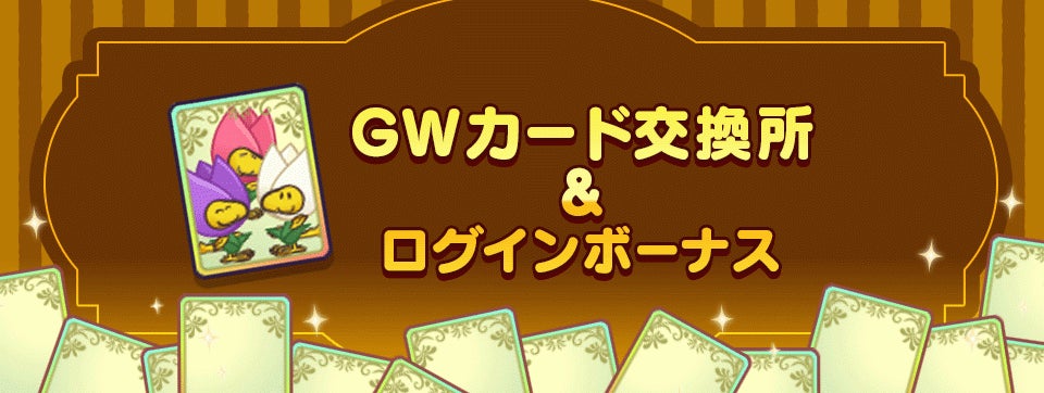 『GWカード』や豪華景品がもらえる「ログインボーナス」や「カード収集イベント」を開催中!カードを集めてかわいいアイテムと交換しよう。