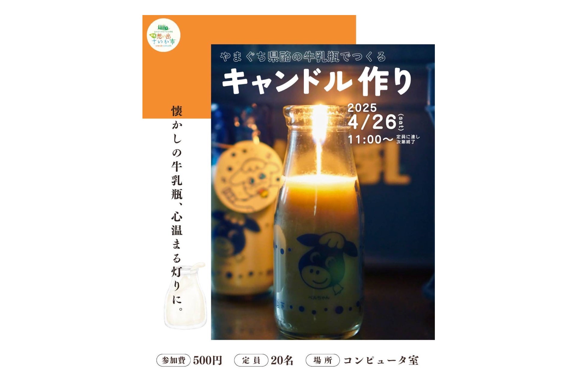 懐かしの牛乳瓶、心温まる灯りに。やまぐち県酪の牛乳瓶でキャンドル作り。