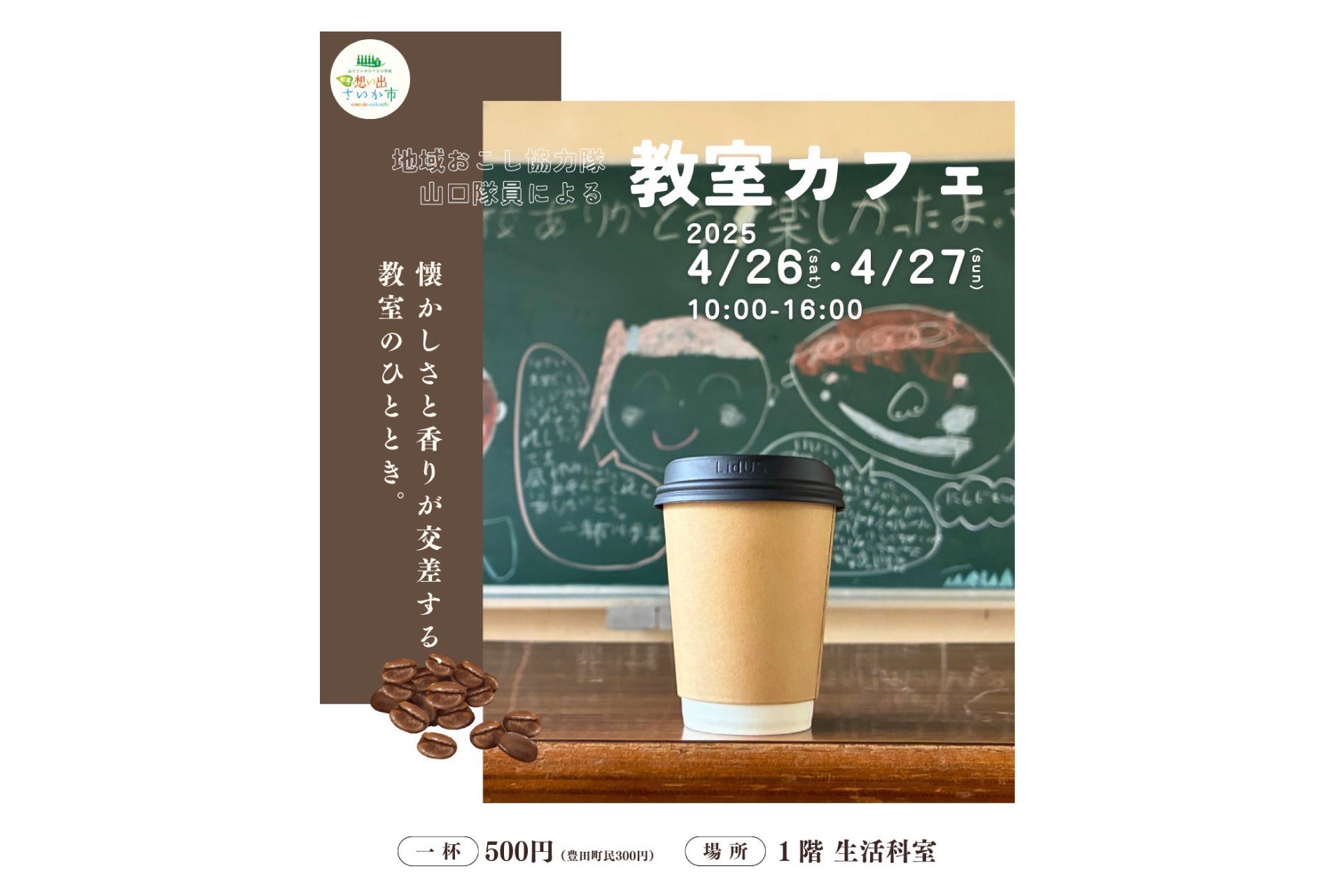 教室だった場所を憩いの場に。地域おこし協力隊による教室カフェは豊田町内の人は割引価格で利用できる。