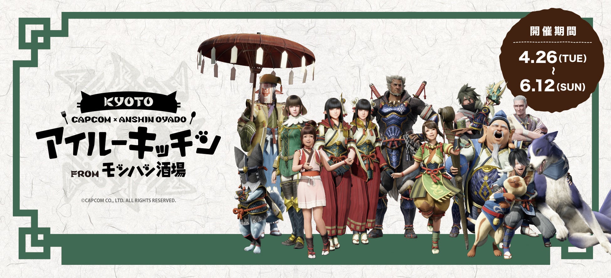 2022年4月26日(火)より、『モンスターハンターライズ』の世界観をイメージしたフードメニューの展開や装飾をした『アイルーキッチン京都』が、京都市下京区にある「安心お宿プレミア 京都四条烏丸店」で期間限定オープンいたします。