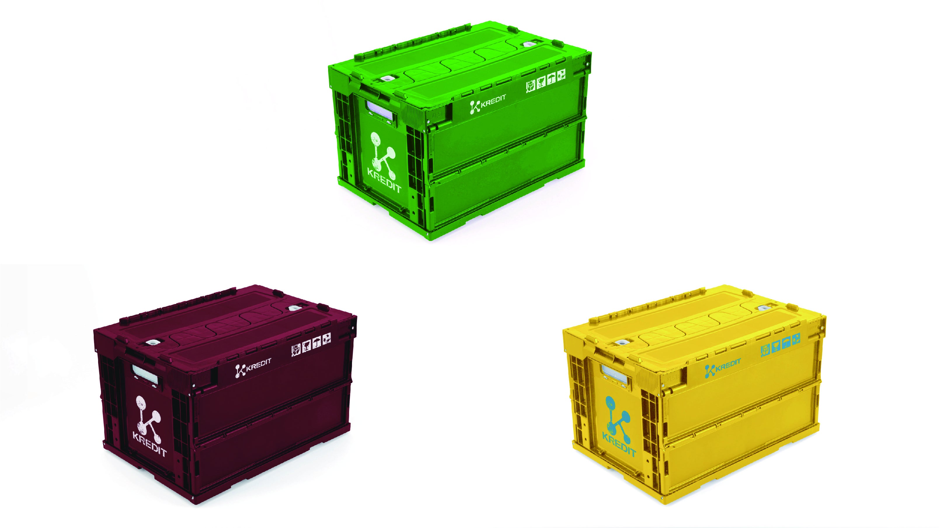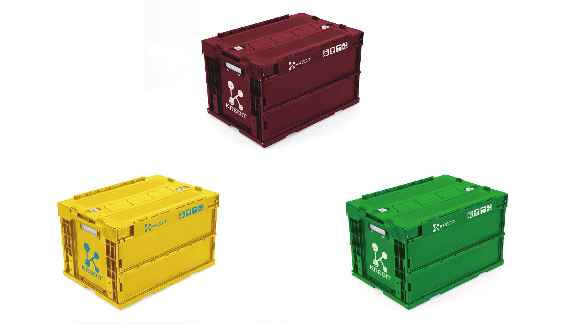 ▼KREDIT 折りたたみコンテナ エンジ / 緑 / 黄色
