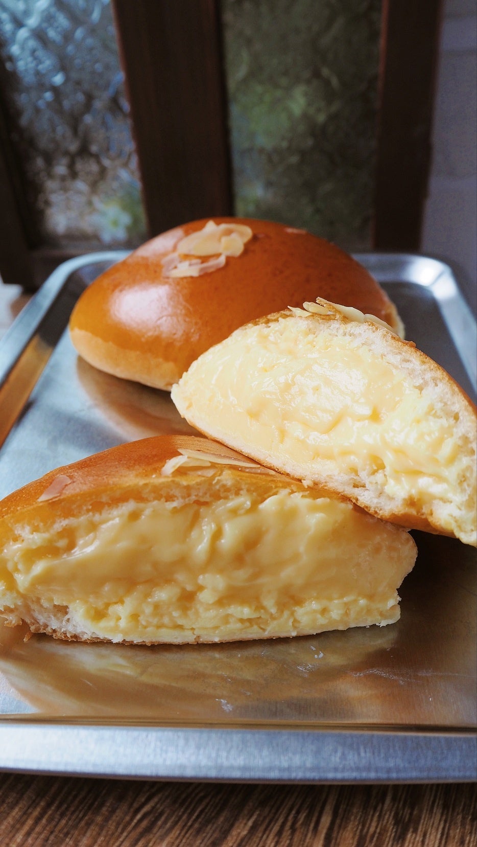 1988年の創業以来、クリームパンを代表商品として長年愛され続けている尼崎のベーカリー。代表商品のクリームパンは、しっとりと柔らかいパン生地と、ずっしりと重いほどたっぷりのカスタードクリーム。しぼりたてクリームパンは1.5倍のカスタードクリームを後入れでしぼり入れた本店名物の商品です。