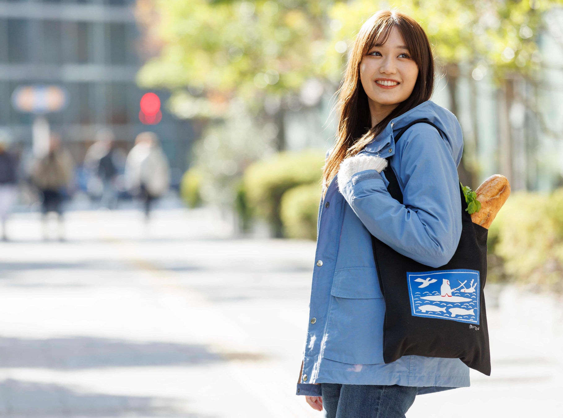 BE-PAL3月号の特別付録は、ブラック地にイヌイットをモチーフにしたイラストが印象的な『安西水丸"イヌイット"タフトート』。厚手生地でしっかり縫製の縦長トートバッグは、アウトドアシーンで重たい荷物を詰め込んでも大丈夫。長めの持ち手は肩掛けもできて、お散歩やショッピングなど、普段使いでも大活躍します。