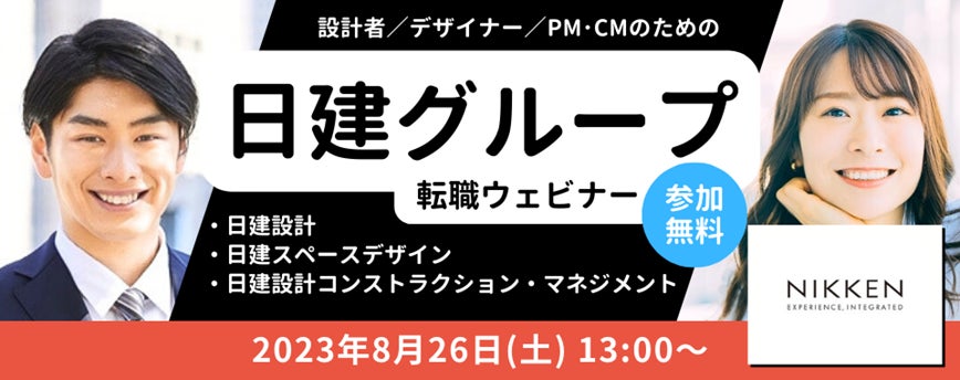 【100名限定】設計者やデザイナー、PM・CMのための日建グループ転職ウェビナー 8/26(土)全国どこからでも参加可!日建設計含むグループ3社による企業説明会&面談会