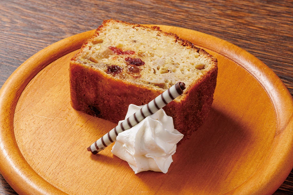 ご予約特典として、ご利用前日の17時までに予約されたお客さまを対象に「バナナとドライフルーツのパウンドケーキ」を提供します。
