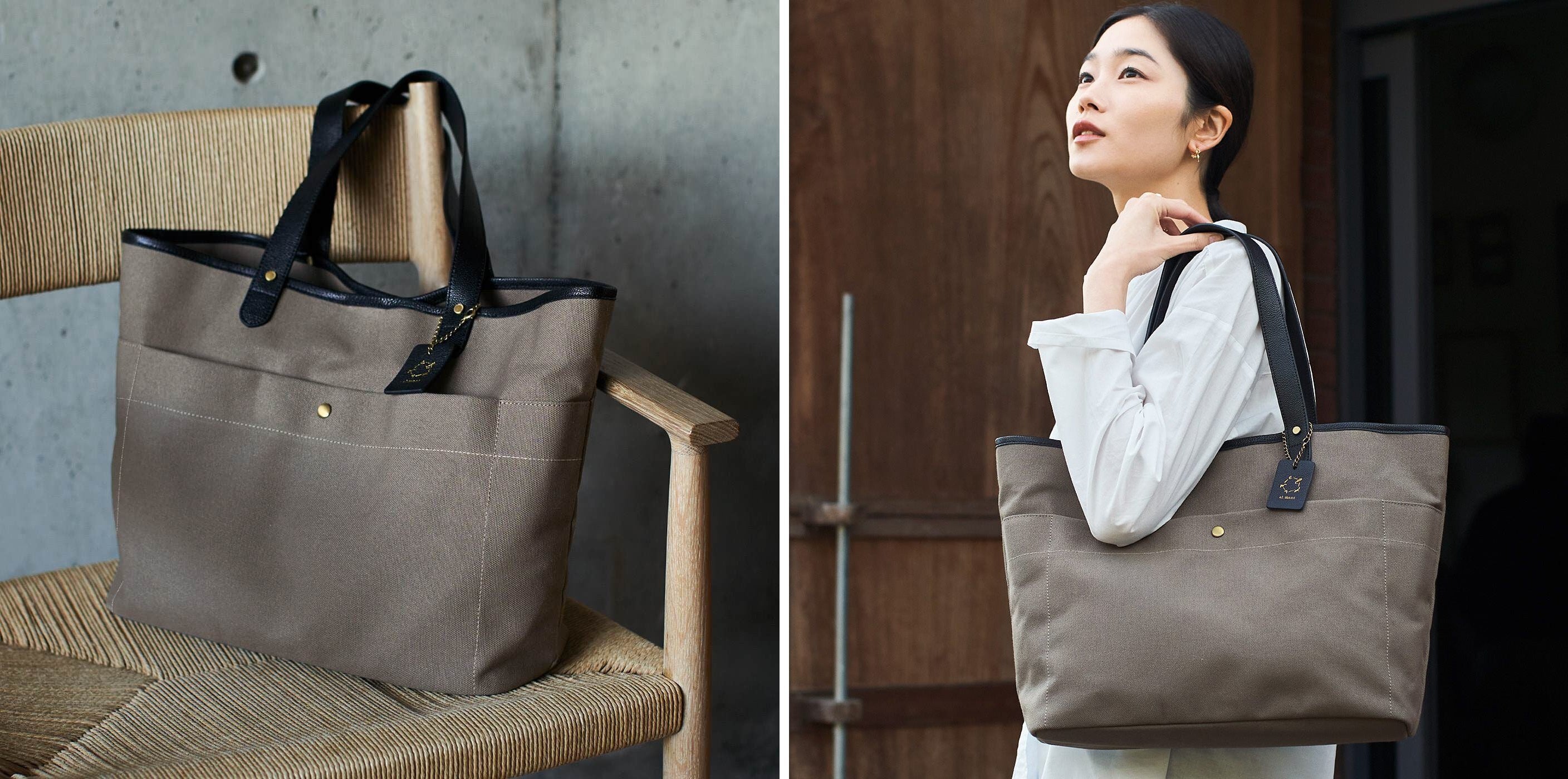 【NEW】el:ment 倉敷帆布と本革遣い ポケットが充実したトートバッグ〈スズ〉