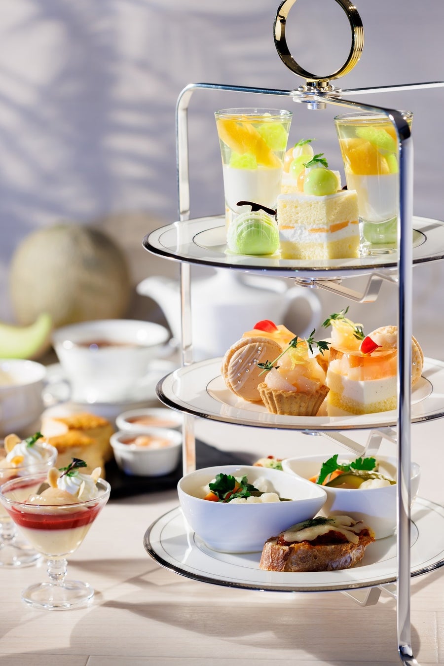 夏に旬を迎えるフルーツである芳醇なメロンと華やかな桃を贅沢に使用した、瑞々しい甘さが広がるアフタヌーンティーを期間限定で提供いたします。