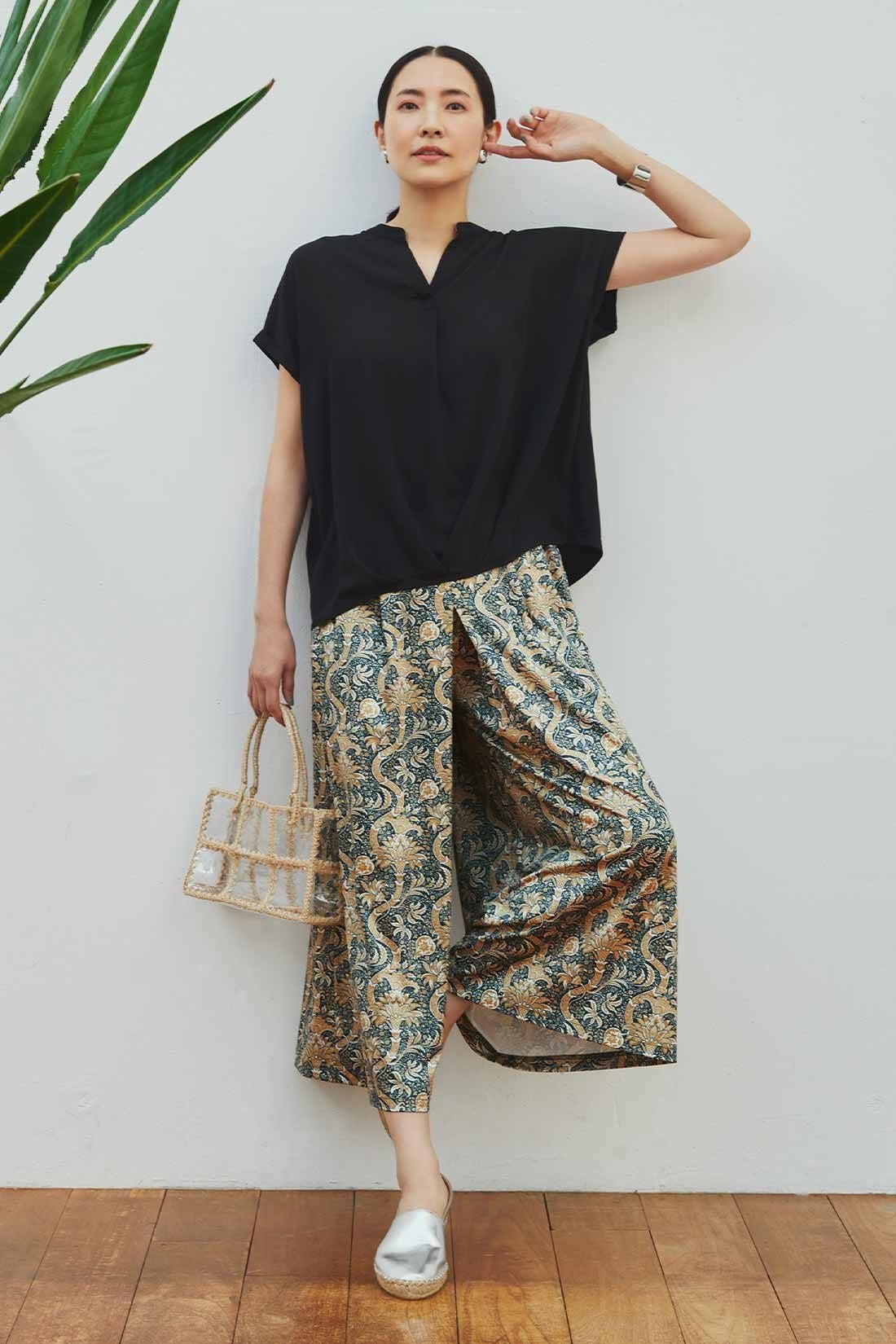 やわらかなとろみカットソー素材に、18世紀のインドの更紗模様からインスピレーションを受けた柄が描かれています