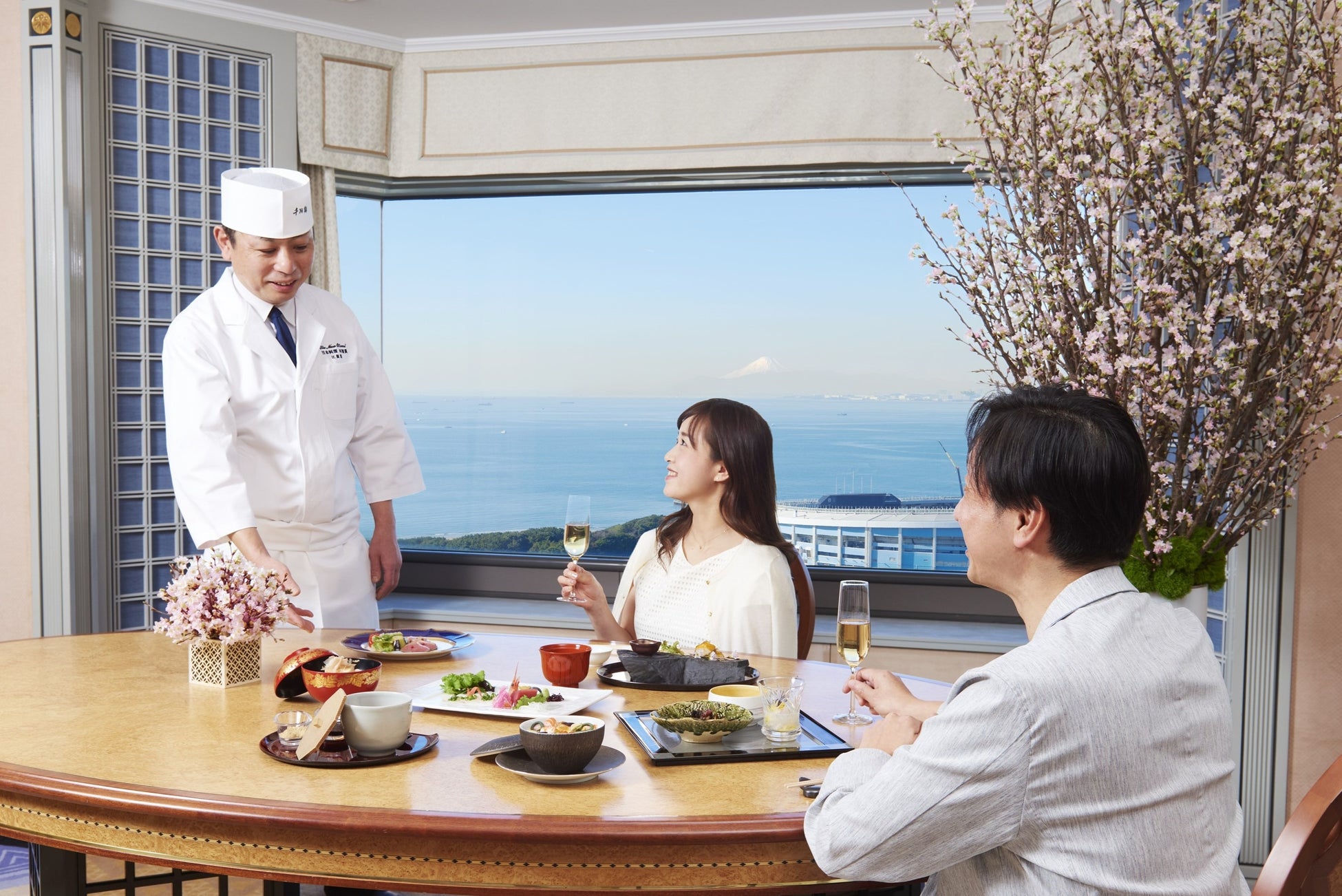 東京湾を一望し、お天気が良ければ富士山までも臨めるスイートで、日本料理料理長 比留間健一が監修するプラン限定特別会席を愉しむ、1日1室限定のプレミアム宿泊プラン「春の彩り会席付スイートプラン」が登場。旬の味覚を贅沢に織り込んだ会席料理を、誰にも邪魔されないプライベート空間で堪能する至福のひととき。春の陽光に包まれた絶景とともに、五感で味わう贅沢な時間をお過ごしください。