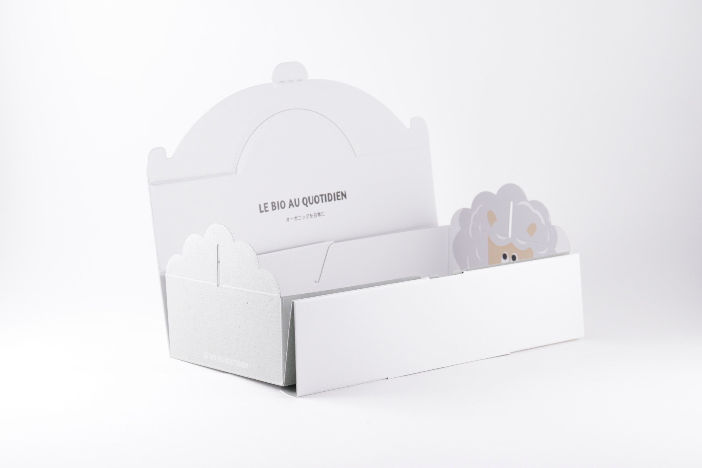 参加頂いた方には自分で作った焼き立てのチョコレートブラウニーをお持ち帰り頂けます。ビオセボンキャラクターの羊をさりげなくあしらったオリジナルボックス付きです。