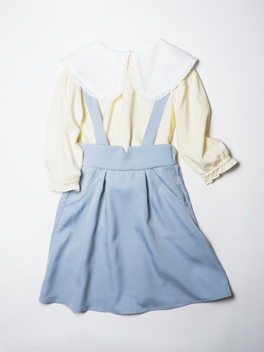 POINT:トップスはトレンドのビッグ襟。前後どちらでも着用できる2WAY!