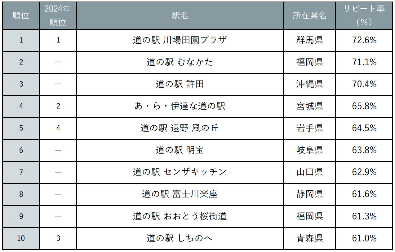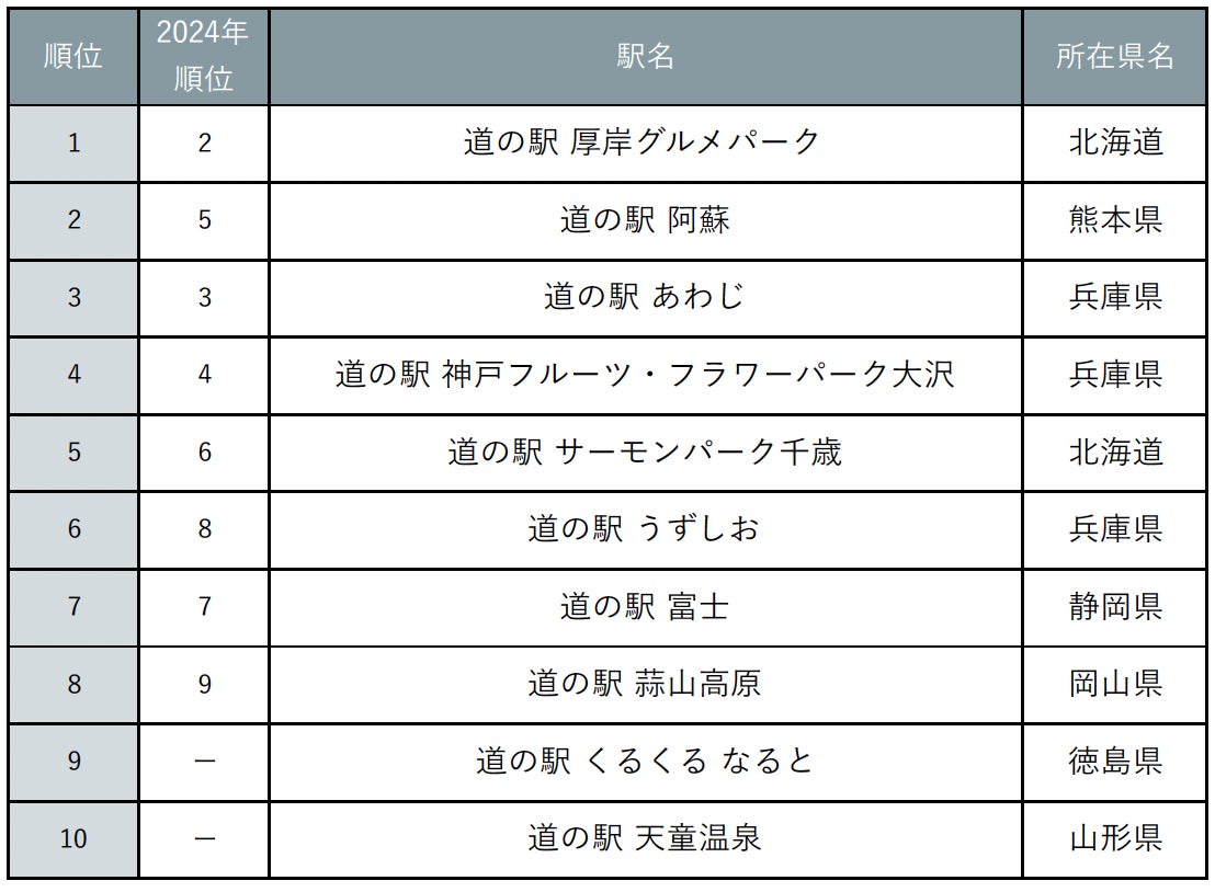 「じゃらん もう一度利用したい道の駅ランキング2025」
