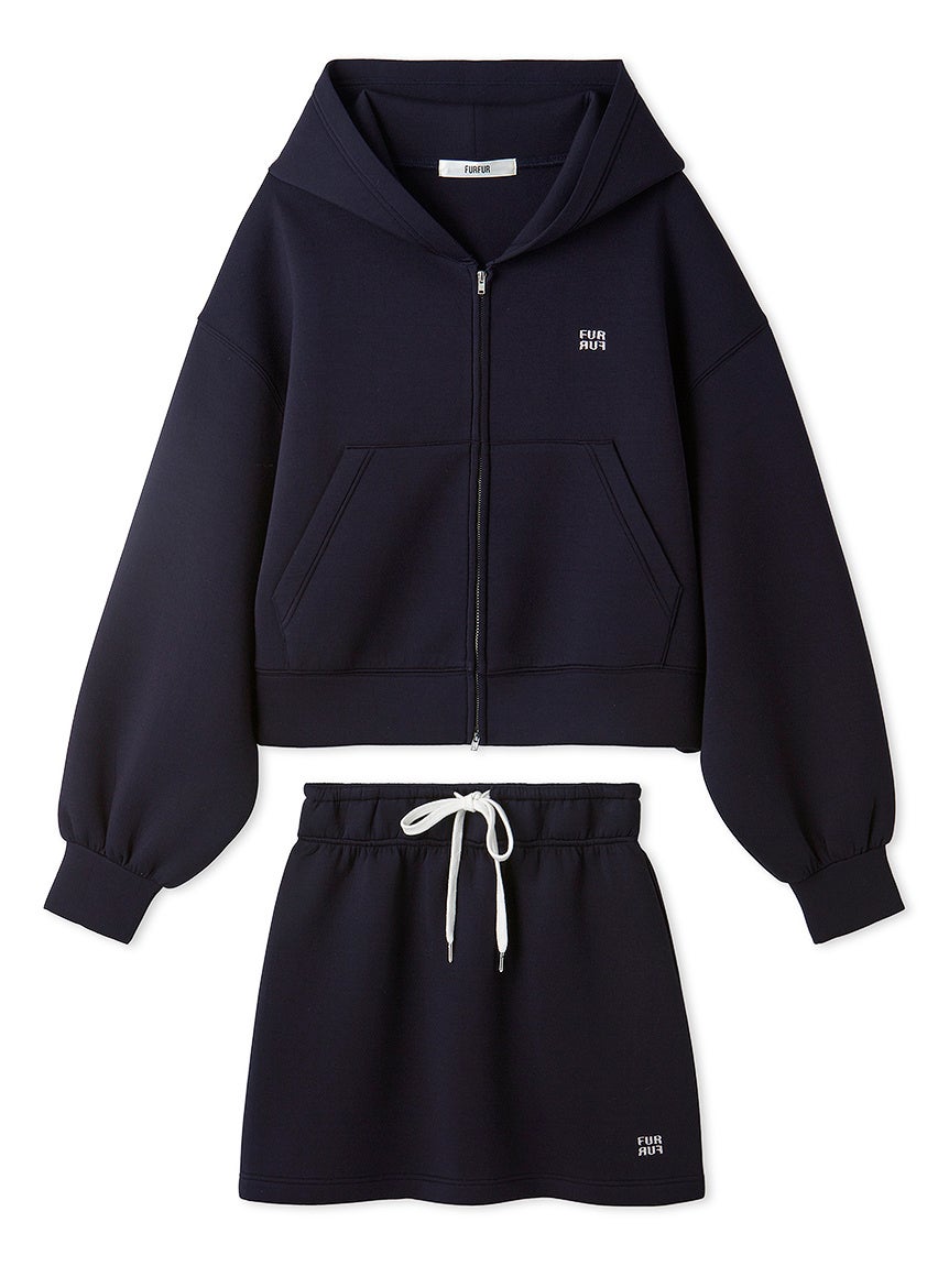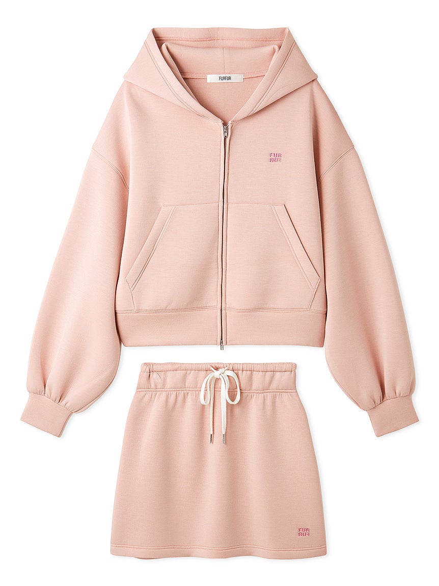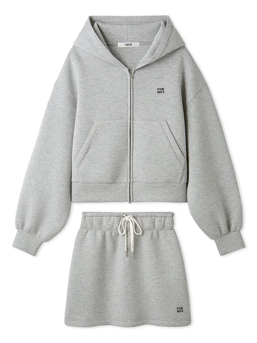 リラクシーな着心地ながらもトレンド感をまとえるジップアップフーディーとミニスカートがセットになったスペシャルアイテム
