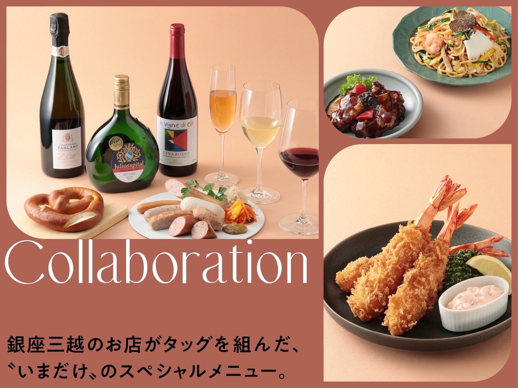 銀座三越でお馴染みのお店同士がスペシャルコラボレーションした、いましか味わえないスペシャルメニュー。こだわりが詰まった食材と調理法をかけあわせて、とっておきのおいしさに仕上げました。