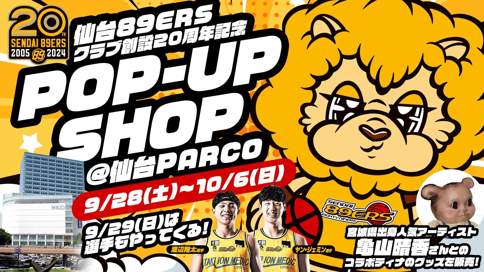 仙台PARCO(宮城県仙台市青葉区)は、B1リーグ所属のプロバスケットボールチームの株式会社仙台89ERS (仙台市太白区、代表取締役社長 志村雄彦)クラブ創設20周年を記念し、『仙台89ERSクラブ創設20周年記念ポップアップショップ@仙台PARCO 』を開催いたします。