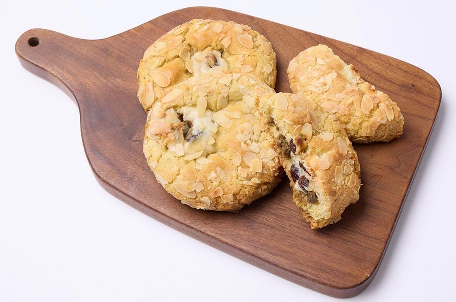 厚みがあり、ボリューム満点。黒糖にラムレーズンやチョコ・クリームチーズなど素材がぎっしり!