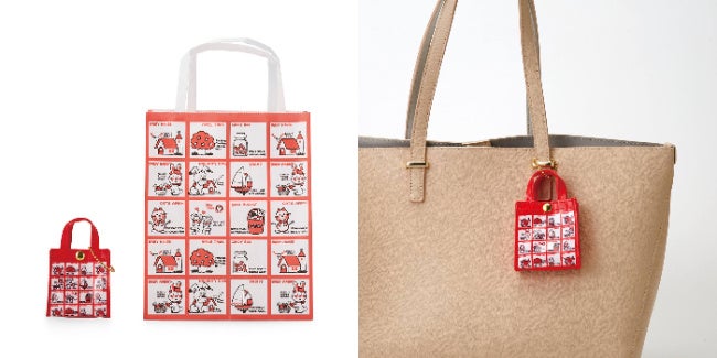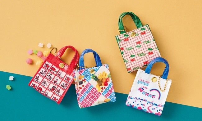 シモジマの紙袋をモチーフにした、リップや目薬などを入れられるミニサイズのバッグ型チャームです。ラミネート加工されたハリのある生地で、小さいながら存在感があります。〈ストップぺイル〉〈チェリー〉〈レターフルーツ〉〈シモジマトレイン〉の4種類です。