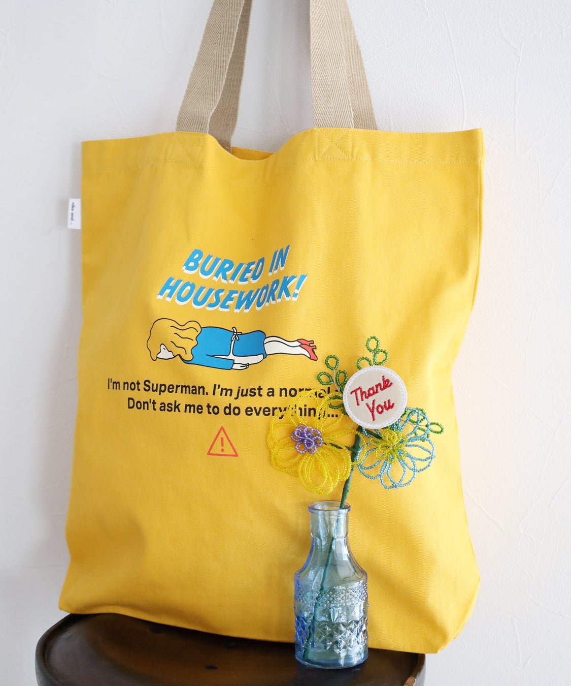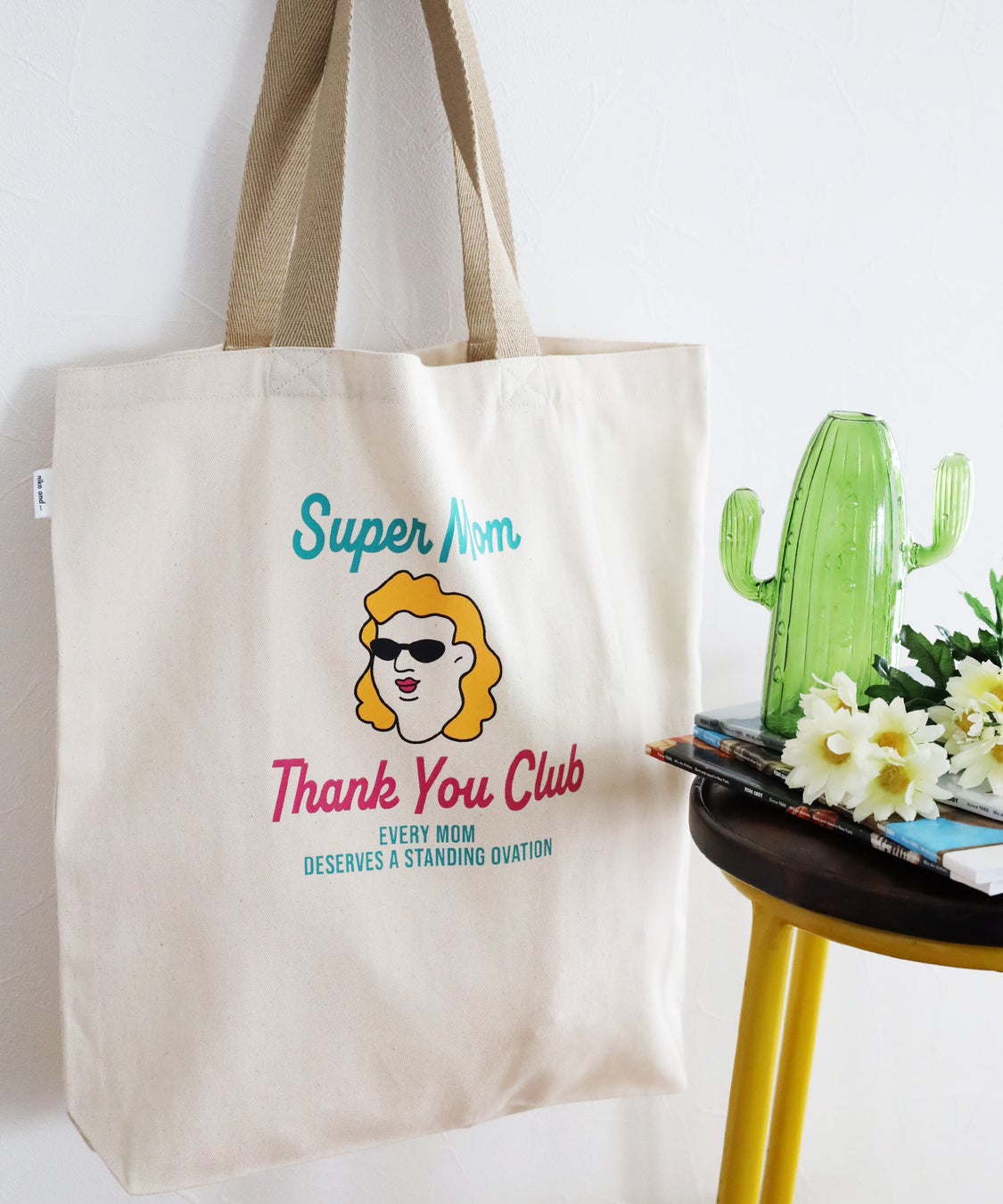 カラフルな色合いにSuper Momのデザインがインパクトのあるトートバッグ。