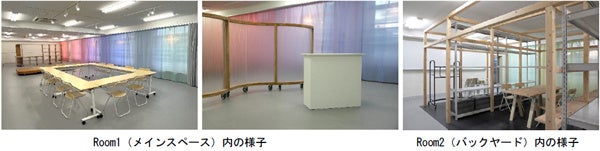 セミナーやワークショップ、展示会等に利用できる広々としたメインスペース(Room1)と、控室としても利用でき、すべての什器を収容可能なバックヤード(Room2)があります。机・椅子等の通常什器に加え、開明庁舎が旧小学校校舎であるという特徴を生かし、古い教壇を再利用したミニステージ、受付台や陳列棚として利用できる図書館をイメージしたカウンター等の什器も備えています。また、プロジェクターやスピーカー等の機材の貸出を有料で行っています。