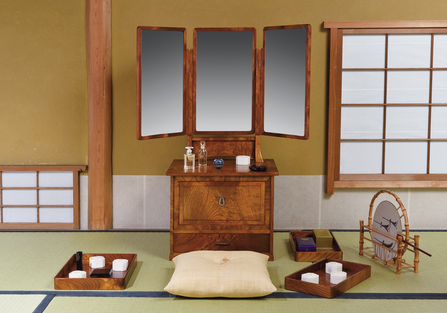 雪岱は東京美術学校(現・東京藝術大学)日本画選科を卒業し、さまざまな仕事に就きますが、1914(大正3)年に手掛けた泉 鏡花作『日本橋』の装幀で高い評価を得ます。また、1918(大正7)年から1923(大正12)年にかけては発足間も無い資生堂意匠部に所属し、当時の意匠部で主流だった欧米スタイルに対し和風のデザインを担当。退社後も現在に至るまで当社で使われている「資生堂書体」や、資生堂の和文ロゴタイプの基本を作った一人として、深い縁を結んでいました。日本画のみならず、挿絵や装幀、舞台美術、映画の考証など幅広い分野における第一人者として活躍し、最も多く残る挿絵では、江戸時代を舞台にした作品を得意とし、高い品格をたたえた清廉典雅なモノクロームの世界を確立しました。