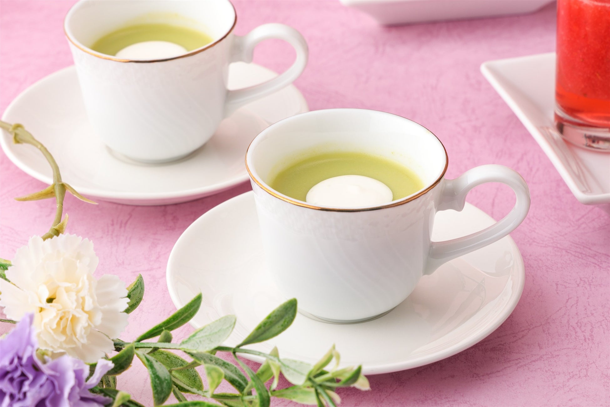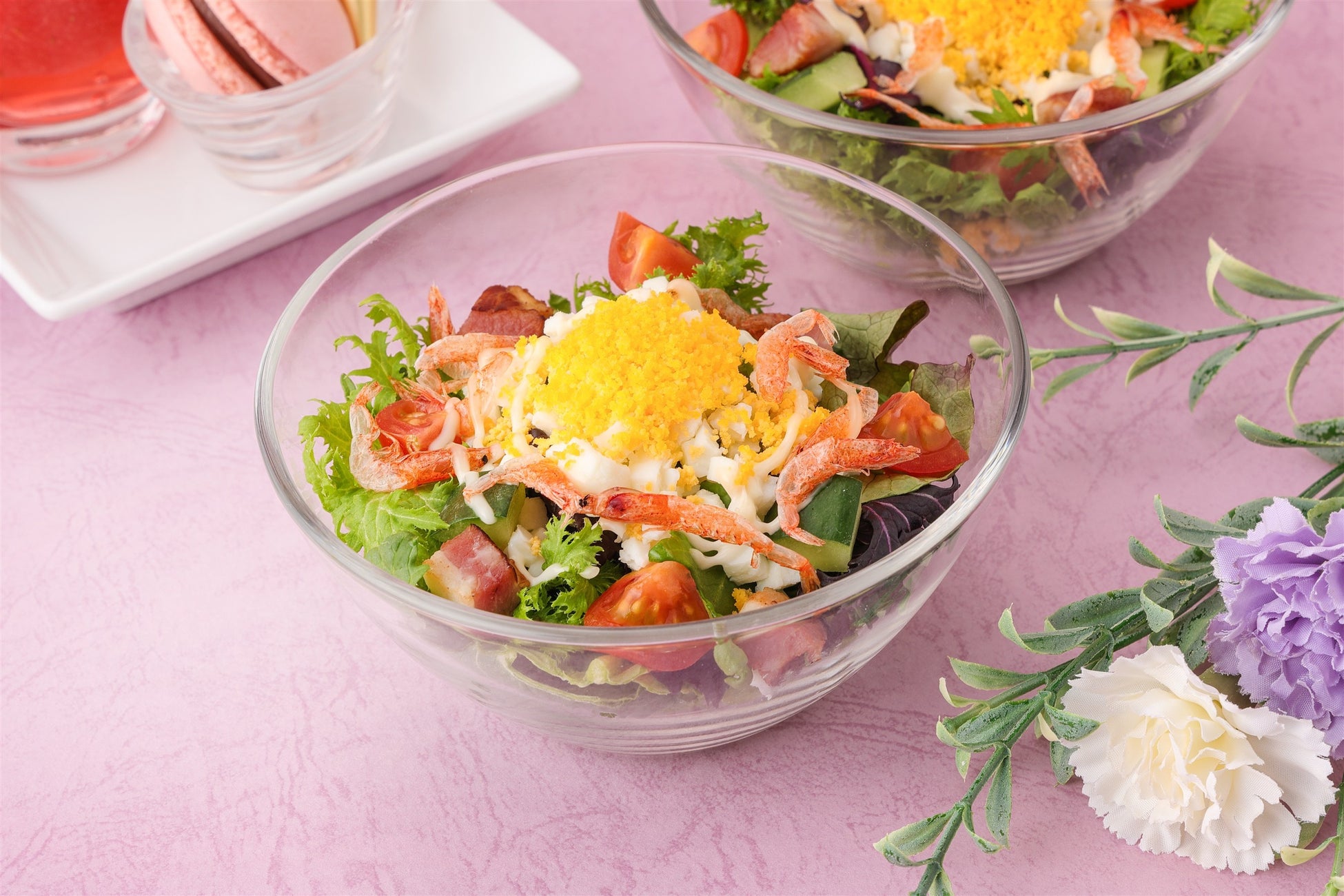 さらに、見た目も鮮やかで桜えびがアクセントの「ミモザサラダ」や、爽やかな緑色が特徴的で濃厚な味わいの「グリーンピースのポタージュスープ」も並び、ボリューム満点の仕上がりに。