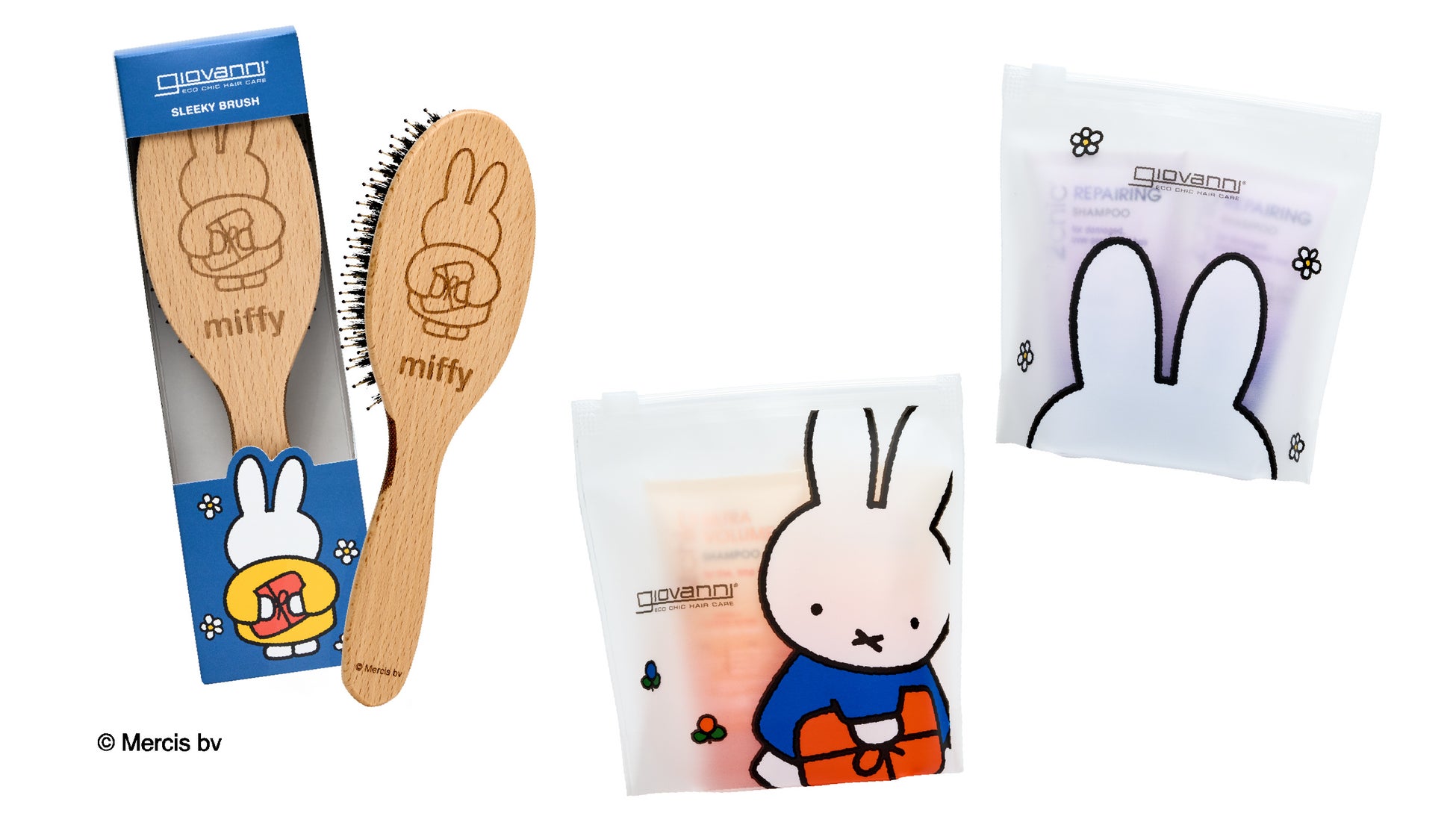 旅先のお供やギフトにも。miffyポーチに入った数量限定ヘアケアトラベルセット。