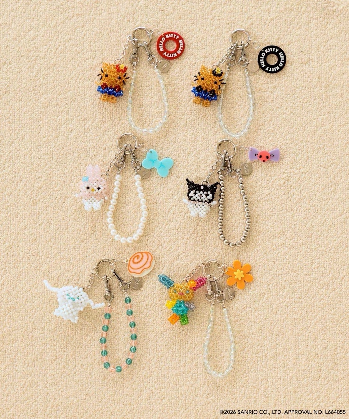 これまでのコラボレーション企画で大人気だったビーズキーチャームにサンリオのキャラクターたちが登場。ハローキティも日焼けバージョンにアップデートし、これからの季節にぴったりのアイテムです。