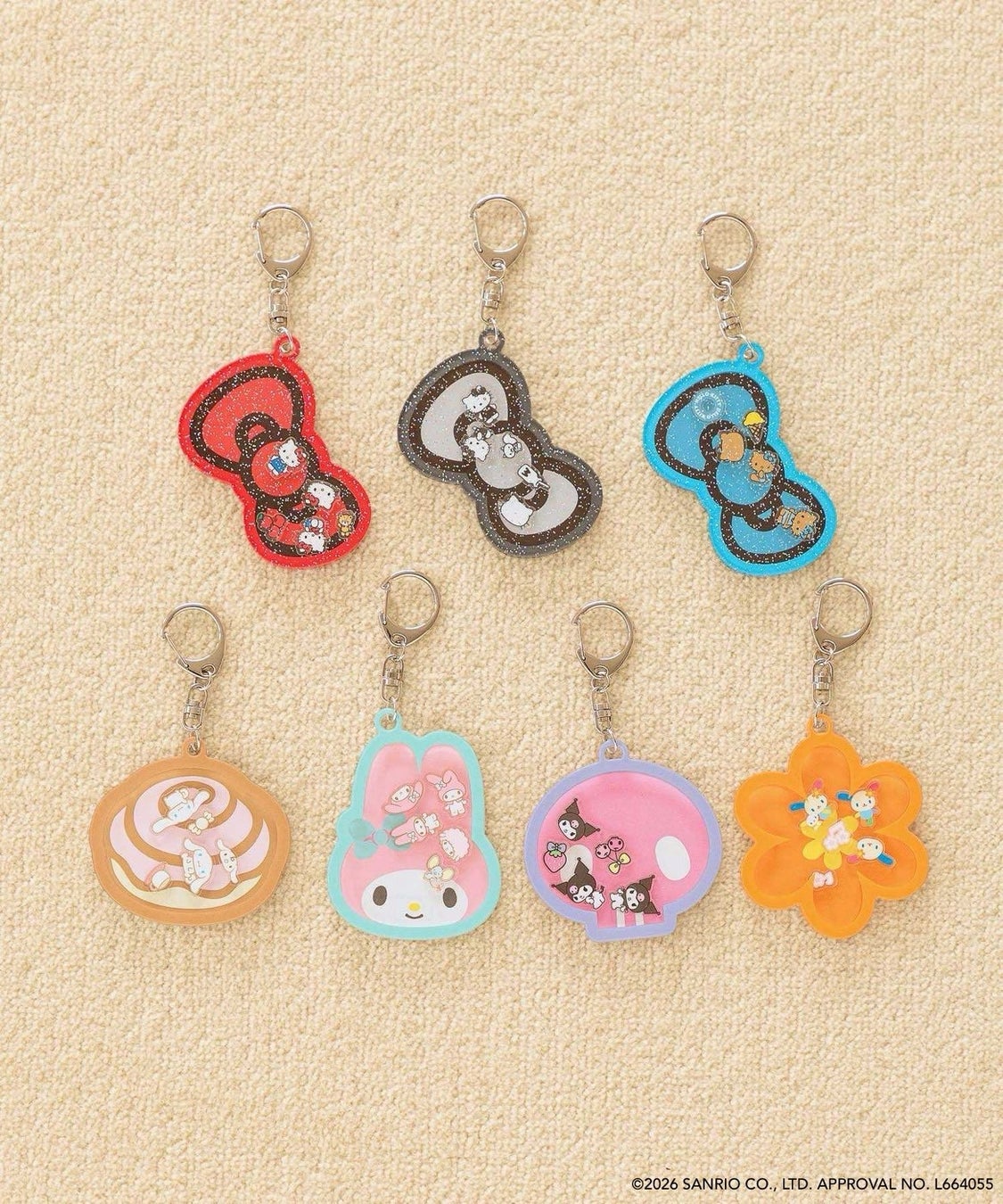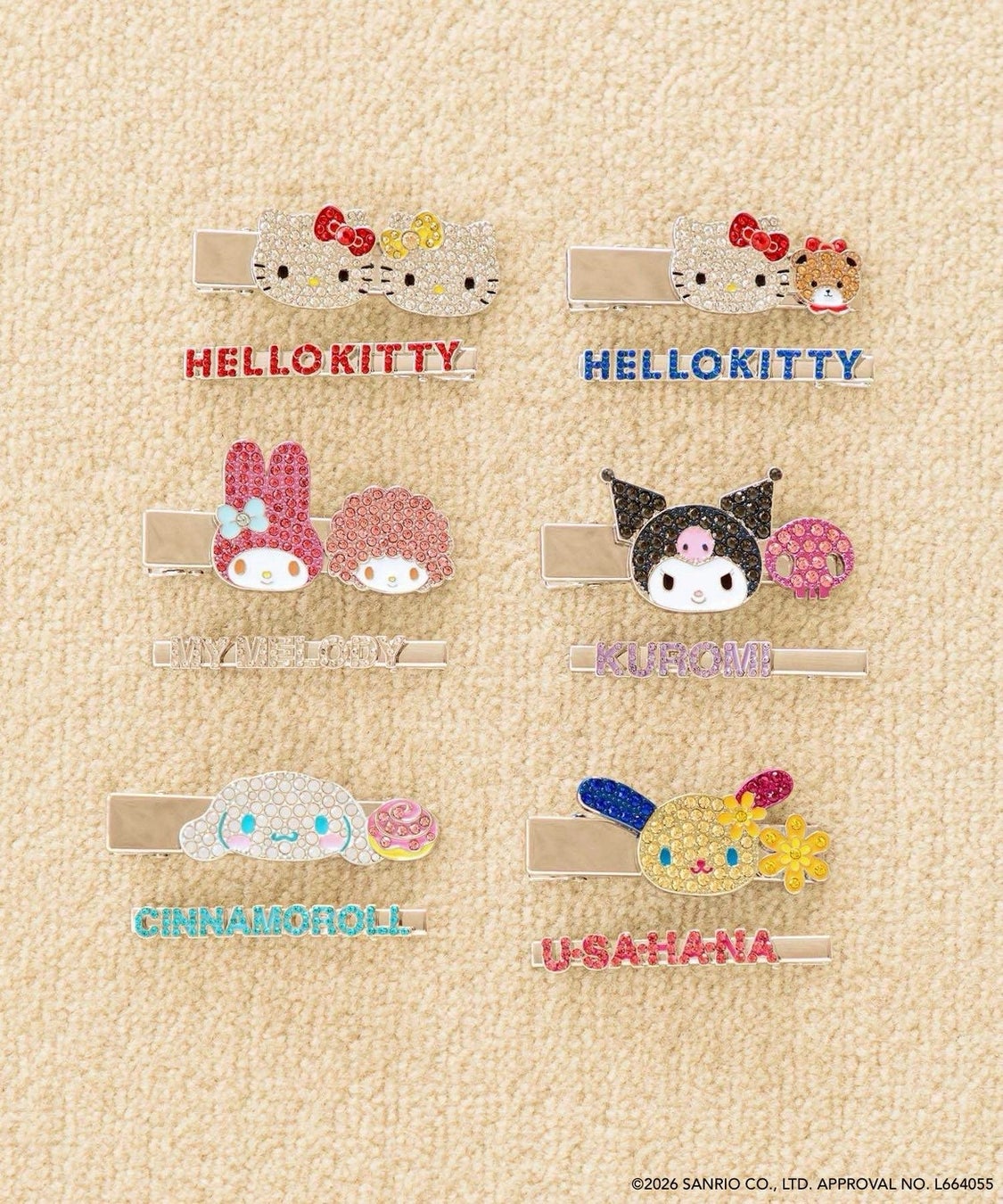 カラー展開:ハローキティ×タイニーチャム、ハローキティ×ミミィ、シナモロール、マイメロディ、クロミ、ウサハナ
