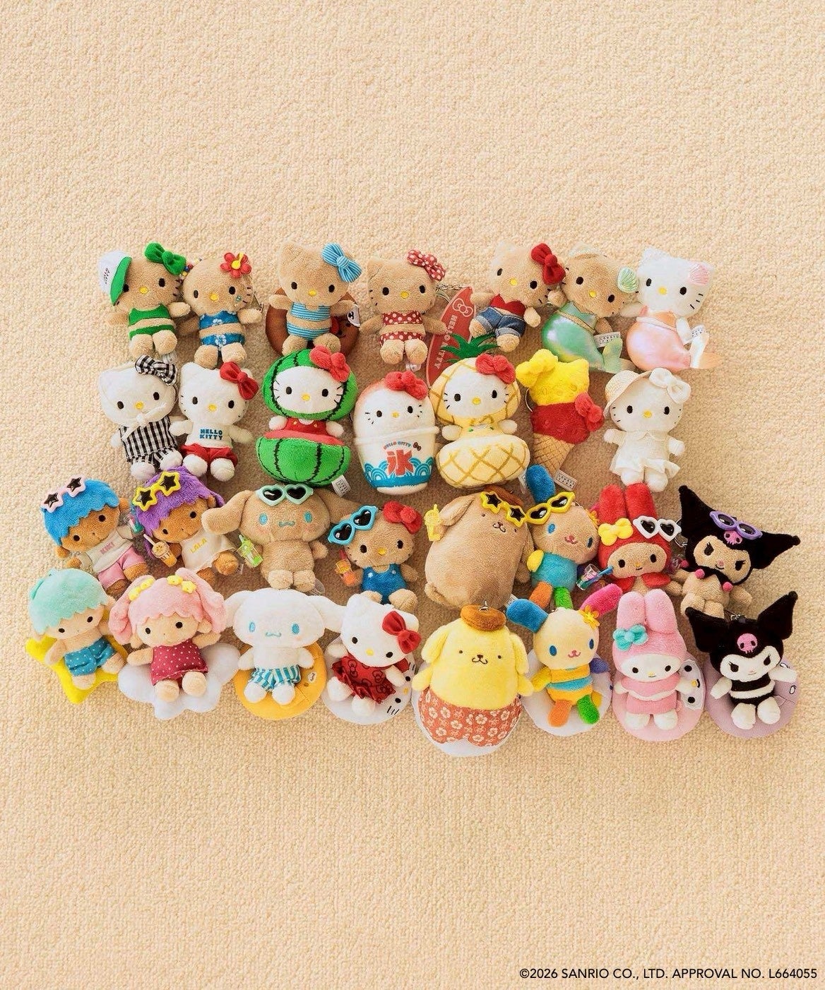毎回大人気のぬいキーホルダー。今回はハローキティだけでなく、全キャラクターの水着と日焼け水着の2 種ずつを展開。夏にぴったりのコスチュームが“カワイイ”LOWRYS FARM でしか手に入らないアイテムです。