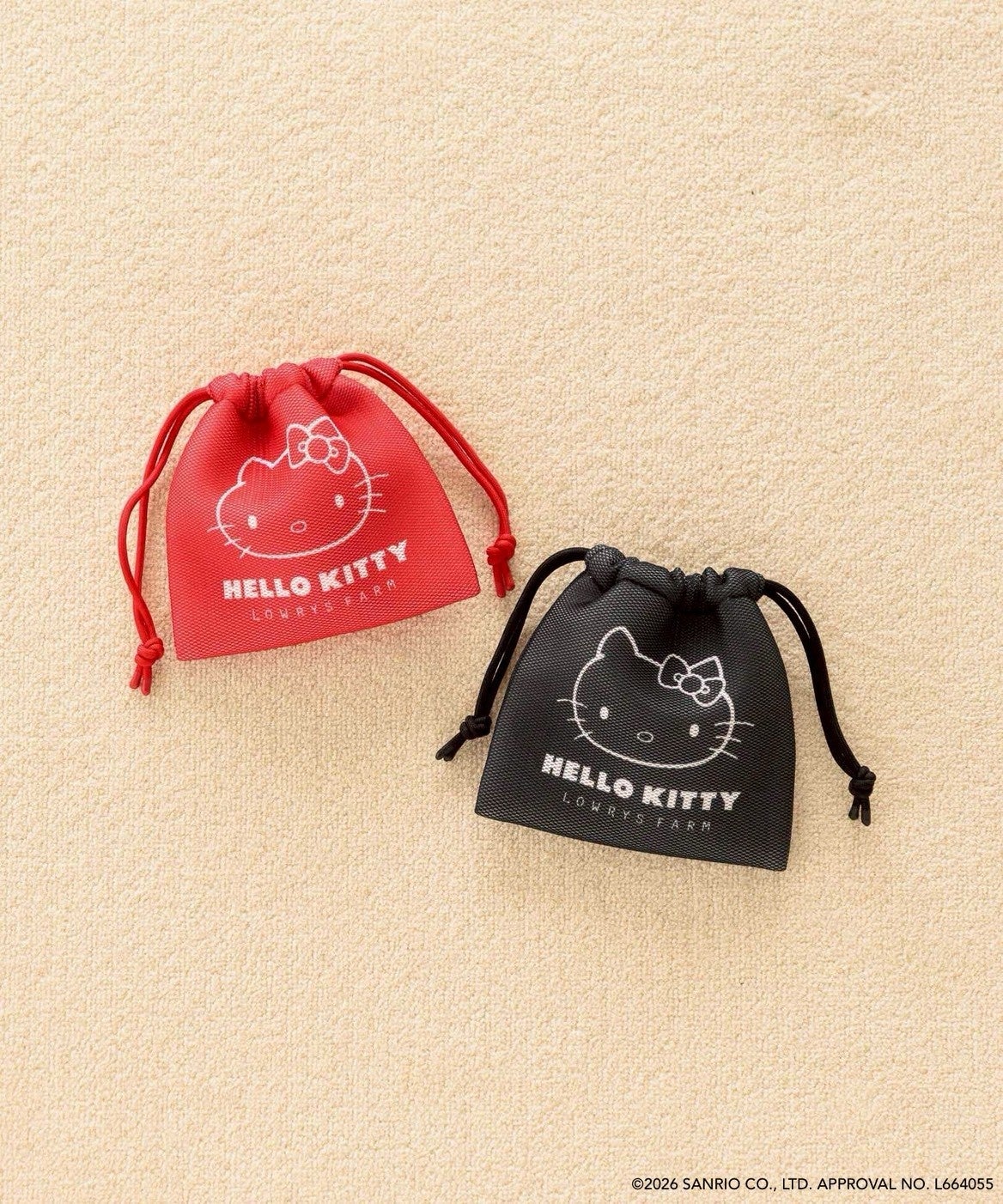 夏らしいメッシュ素材にハローキティがプリントされた巾着ポーチ。ふかふかの生地がポイントで、メイクポーチとしてはもちろん、“キンチャクトートBAG”とのセット使いもおすすめです。
