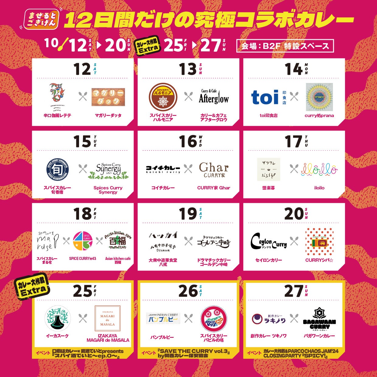 さらに10/25(金)~10/27日(日)の3日間は究極のコラボカレーに加え日替わりイベントを開催!