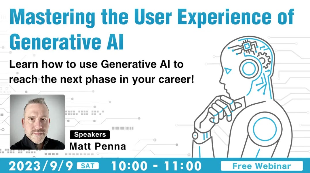 9/9(SAT) Free webinar to learn “the User Experience of Generative AI” 生成AIのUXについて世界的UXデザイナーから学ぶ!