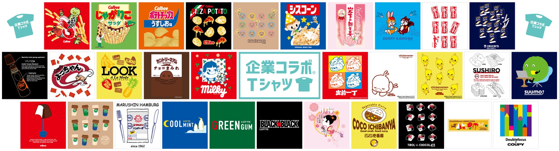 1月28日(金)より順次発売する新商品は、初めてコラボレーションする3社を含む18社の人気商品・サービスのロゴやイラストをあしらったTシャツ全32種類です。豊富なサイズ展開で、親子・きょうだい・友達・カップルなどでのお揃いコーディネートもお楽しみいただけるほか、バレンタインデーの楽しいプレゼントとしてもぴったりです。