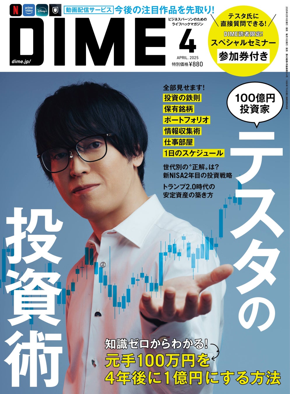累計総利益100億円の投資家「テスタの投資術」を大特集、さらに「テスタ氏の投資セミナー参加券付き」のDIME最新号は本日発売!